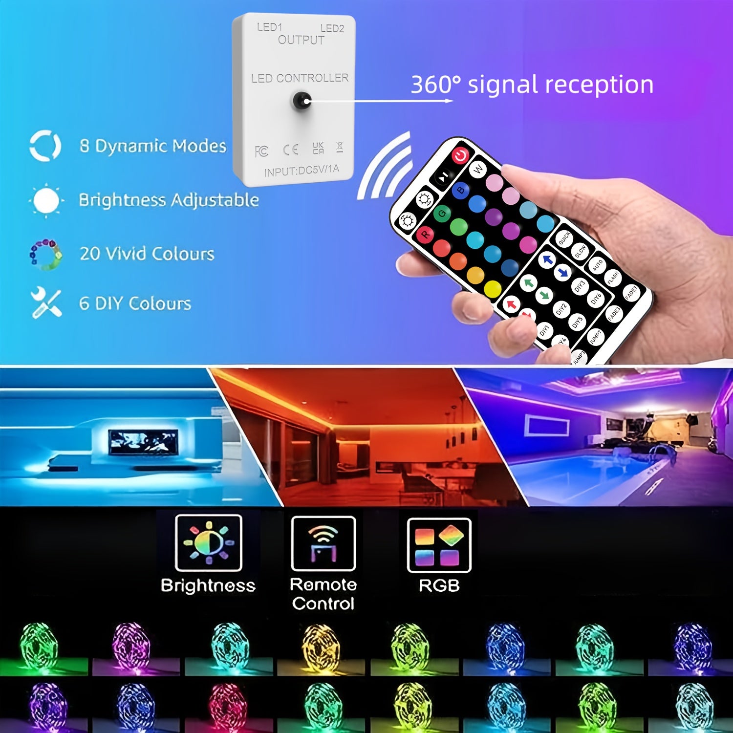 Bande LED RGB de 1 à 30 m pour chambre, avec télécommande 44 touches