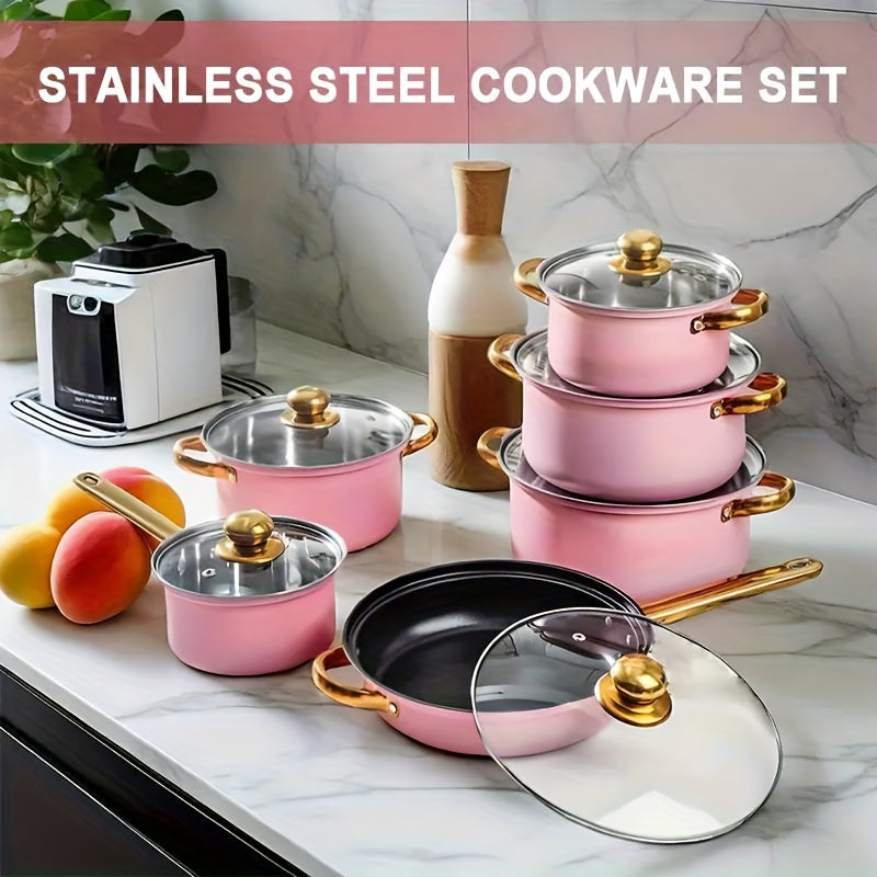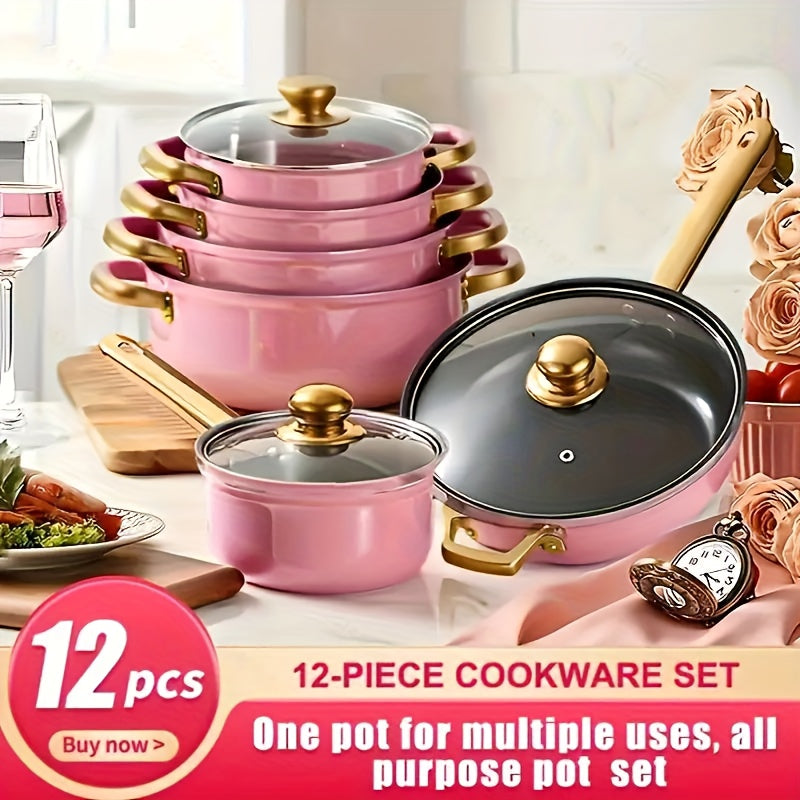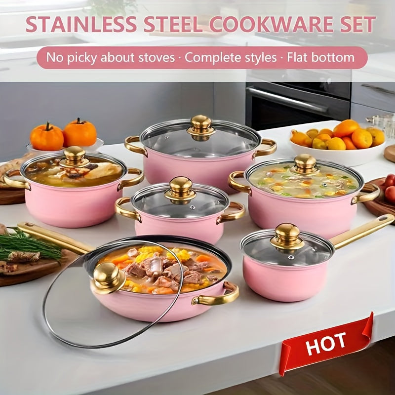 Batterie de cuisine tout-en-un en acier inoxydable 12 pièces