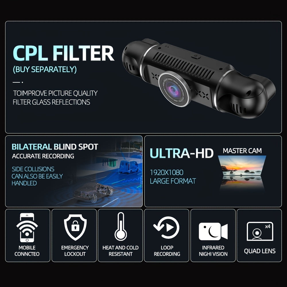 Caméra embarquée 4 canaux 64G pour voiture - Enregistreur vidéo DVR WiFi