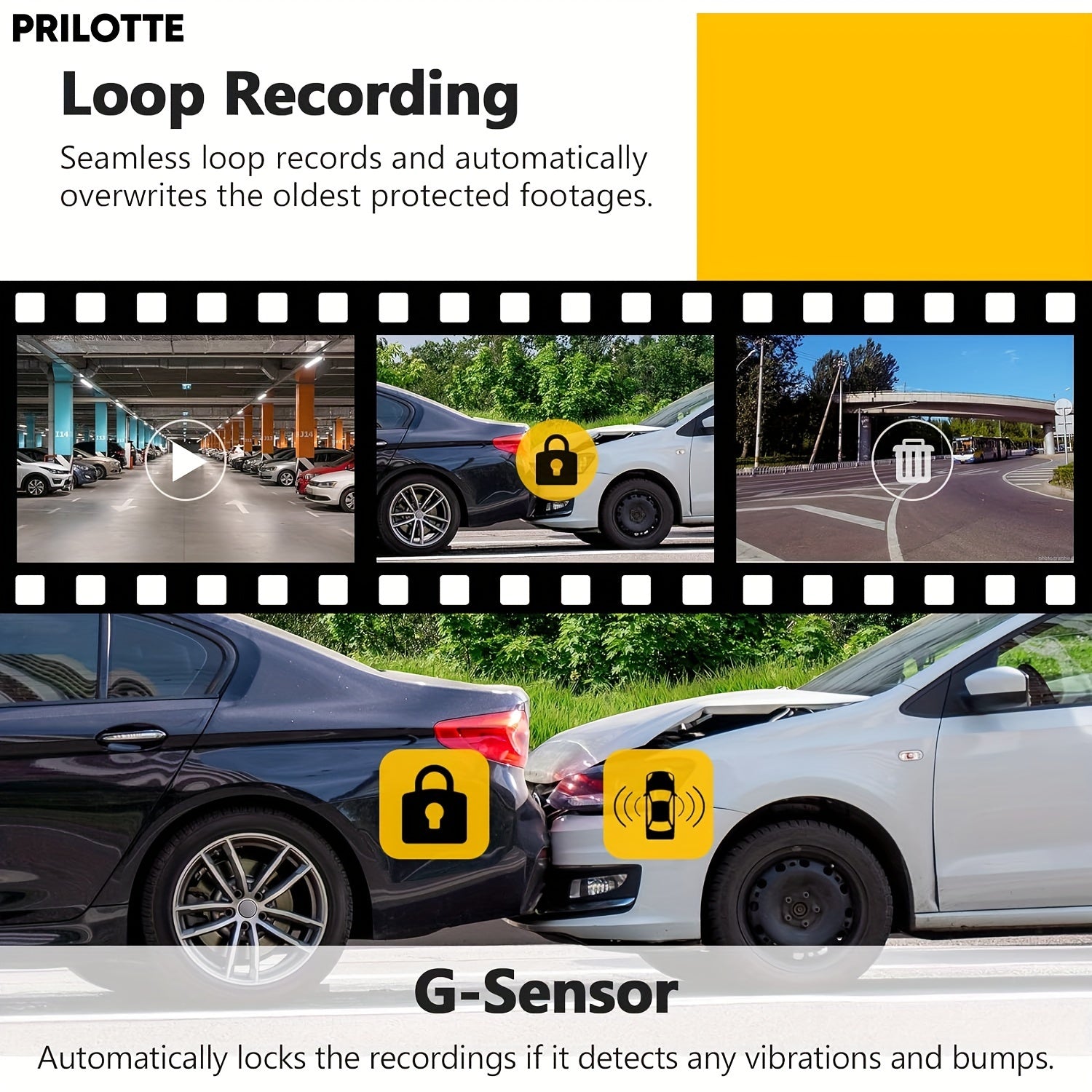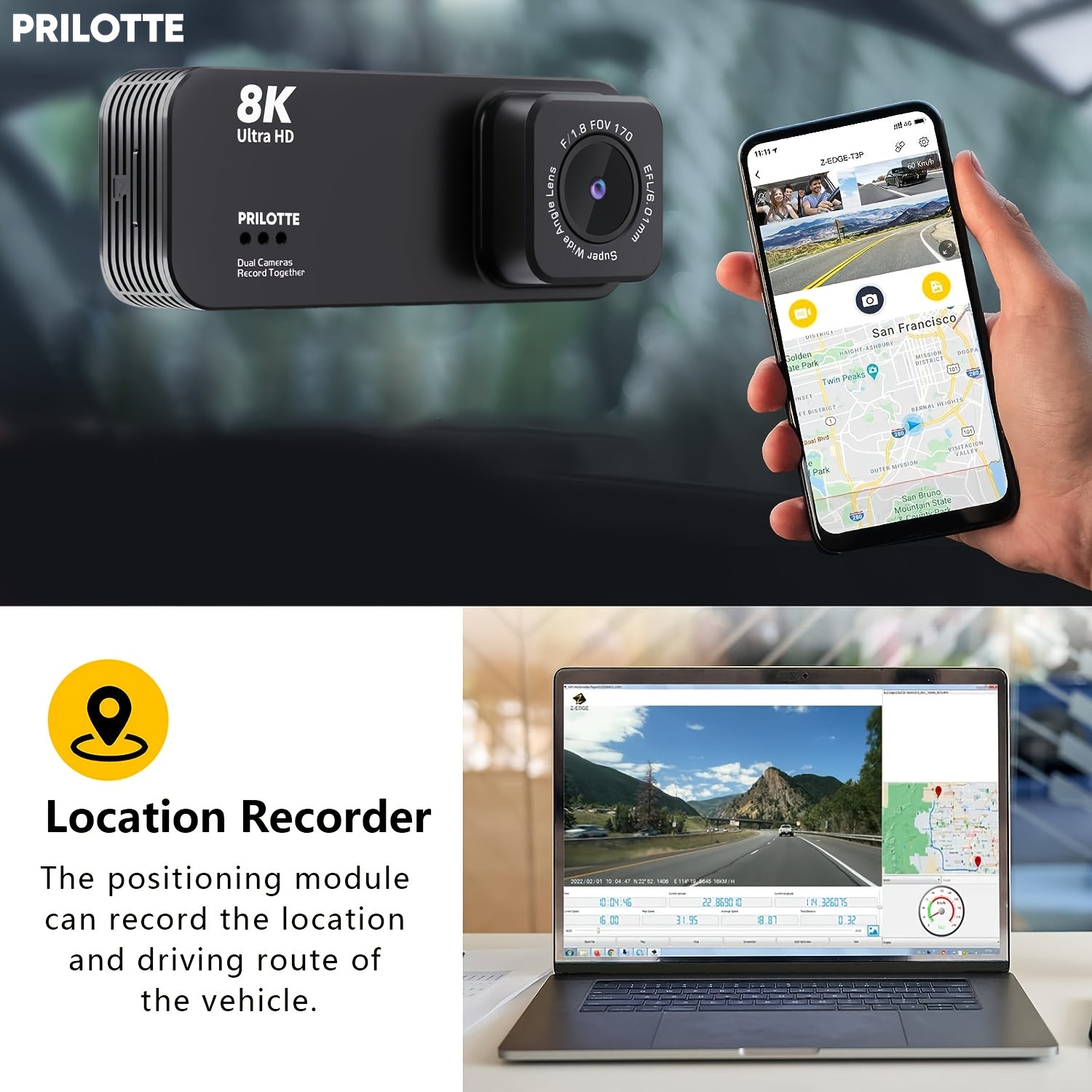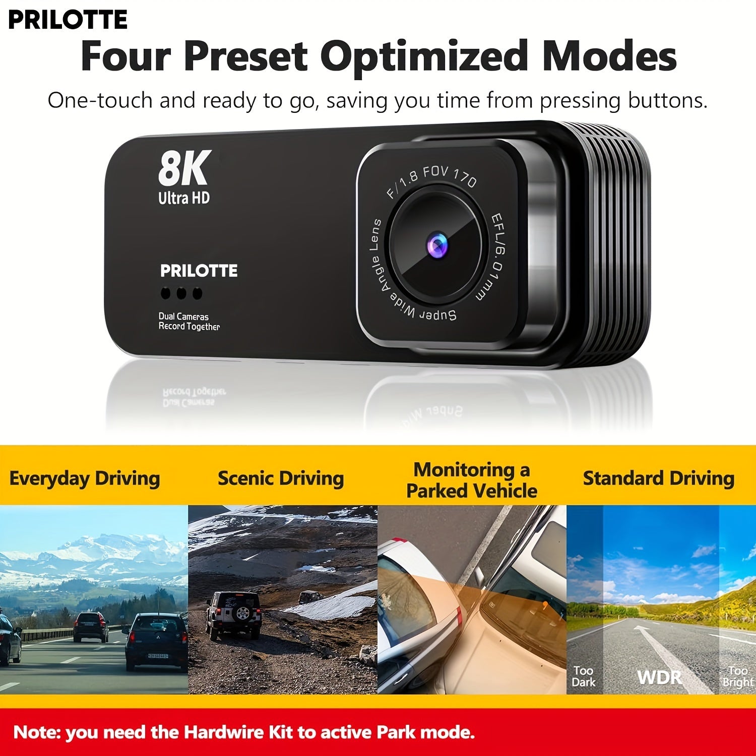 Caméra embarquée Prilotte 8K UHD - Vision nocturne infrarouge, frontale et intégrée, écran IPS 3,16", grand angle 170°, WDR, mode stationnement 24h/24, vision nocturne - Solution de sécurité automobile ultime, modèle A4