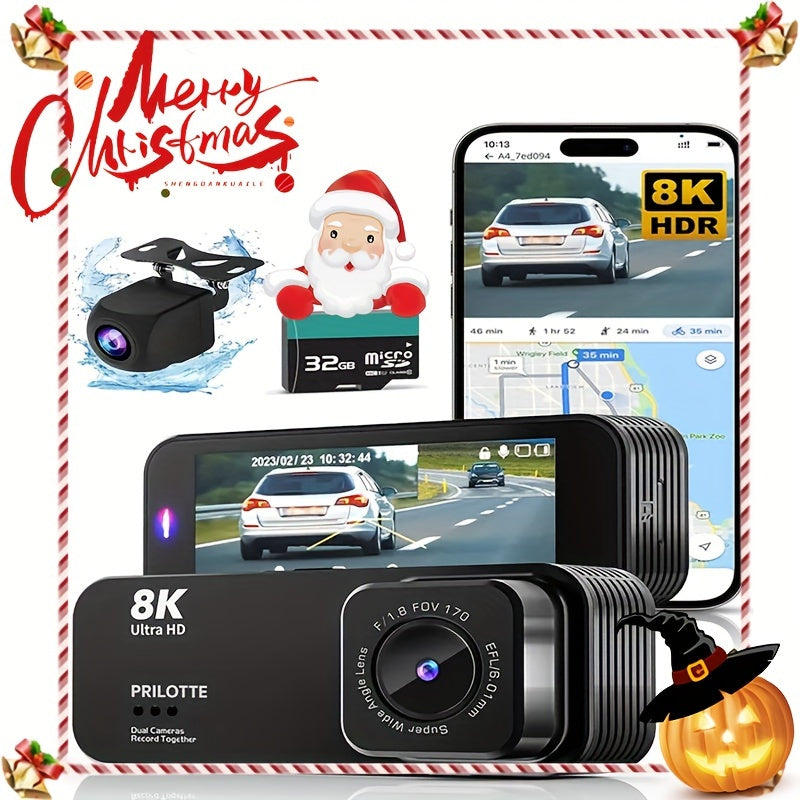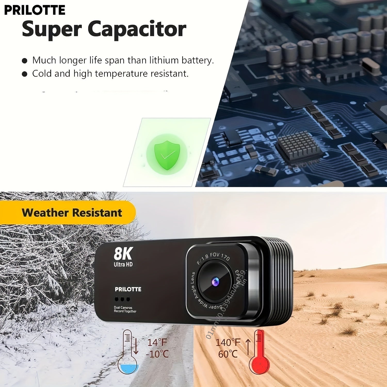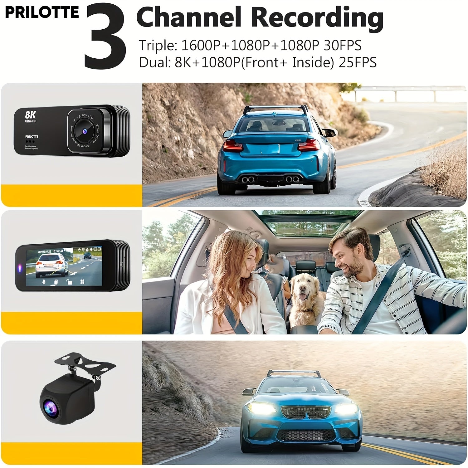 Caméra embarquée Prilotte 8K UHD - Vision nocturne infrarouge, frontale et intégrée, écran IPS 3,16", grand angle 170°, WDR, mode stationnement 24h/24, vision nocturne - Solution de sécurité automobile ultime, modèle A4