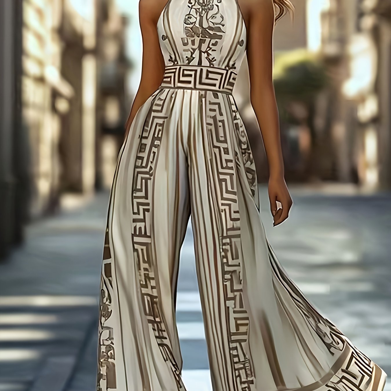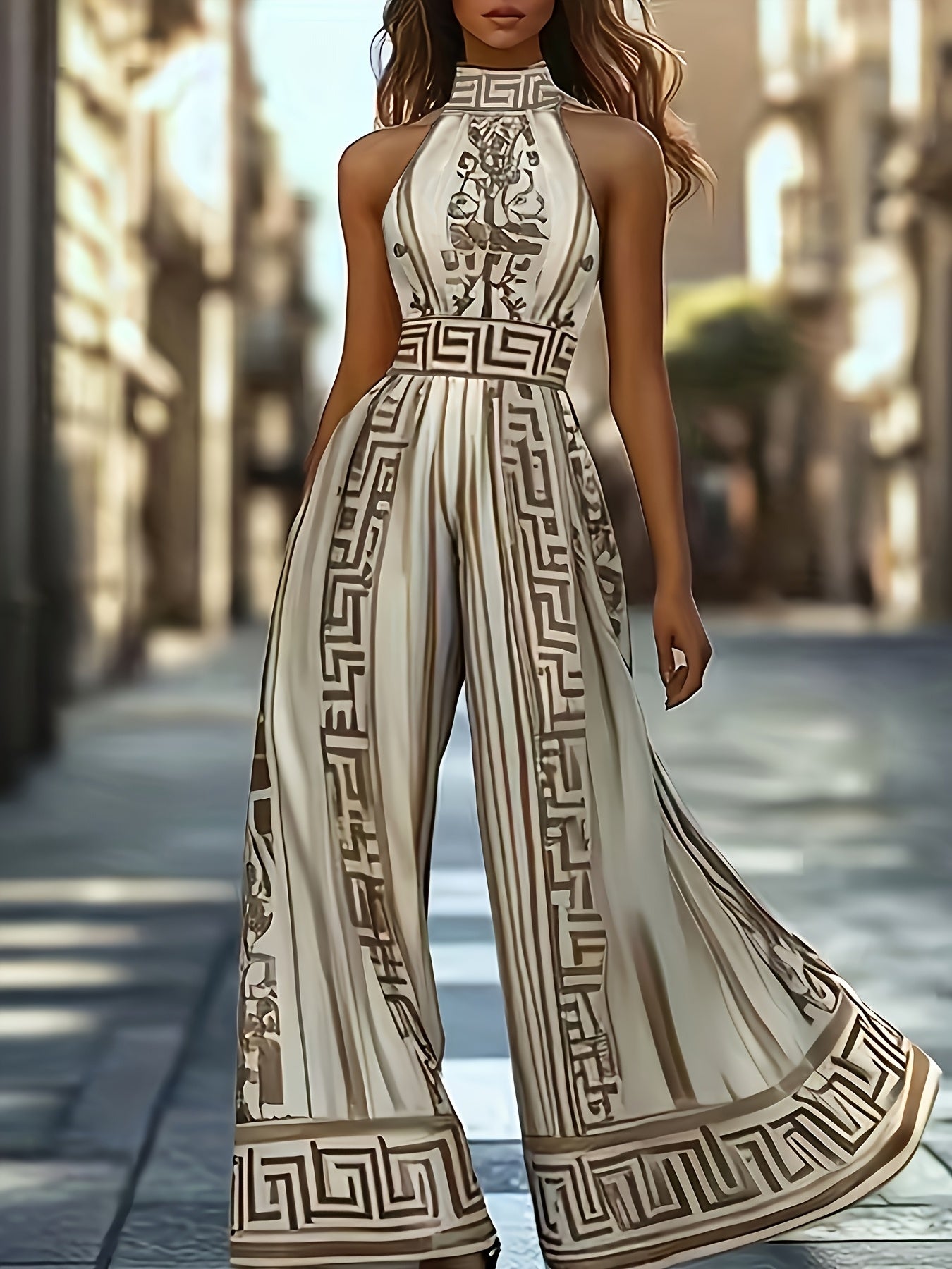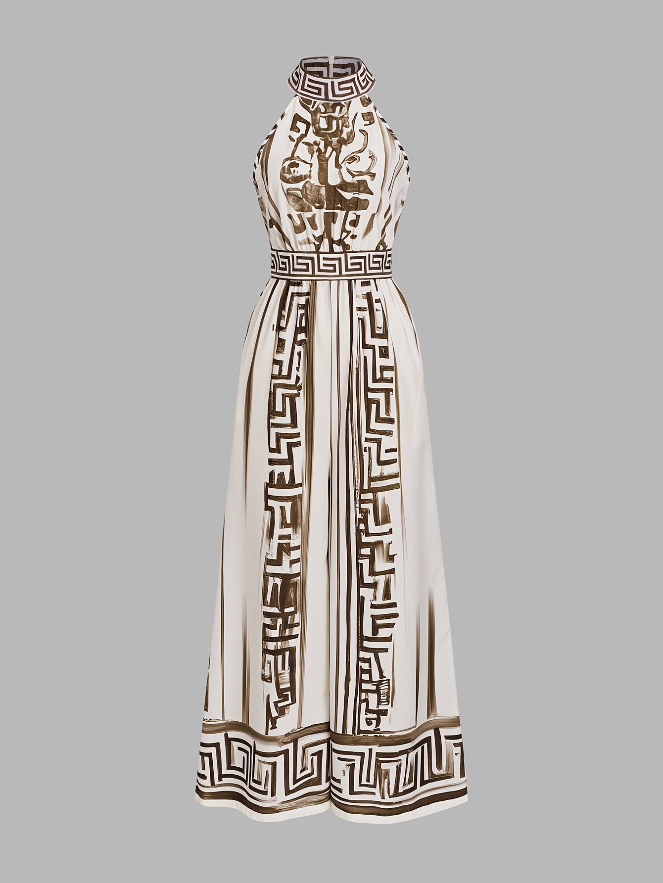 Combinaison élégante vintage sans manches à col rond