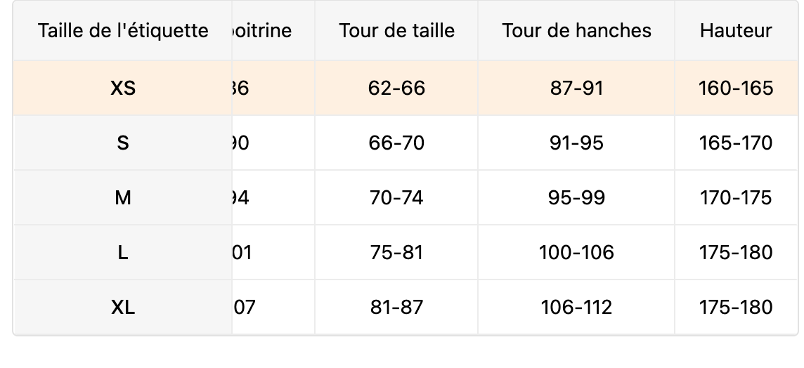 Élasticité du tissu : Aucune élasticité