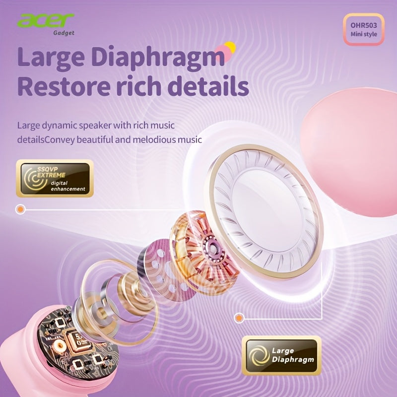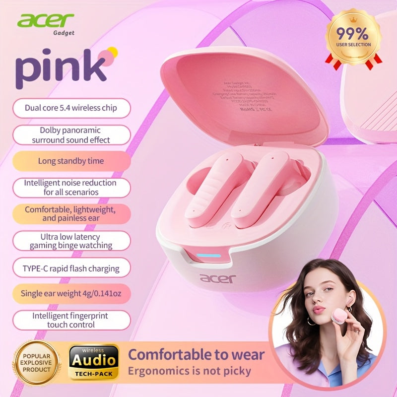 Écouteurs intra-auriculaires sans fil Acer avec chargement USB-C, son stéréo