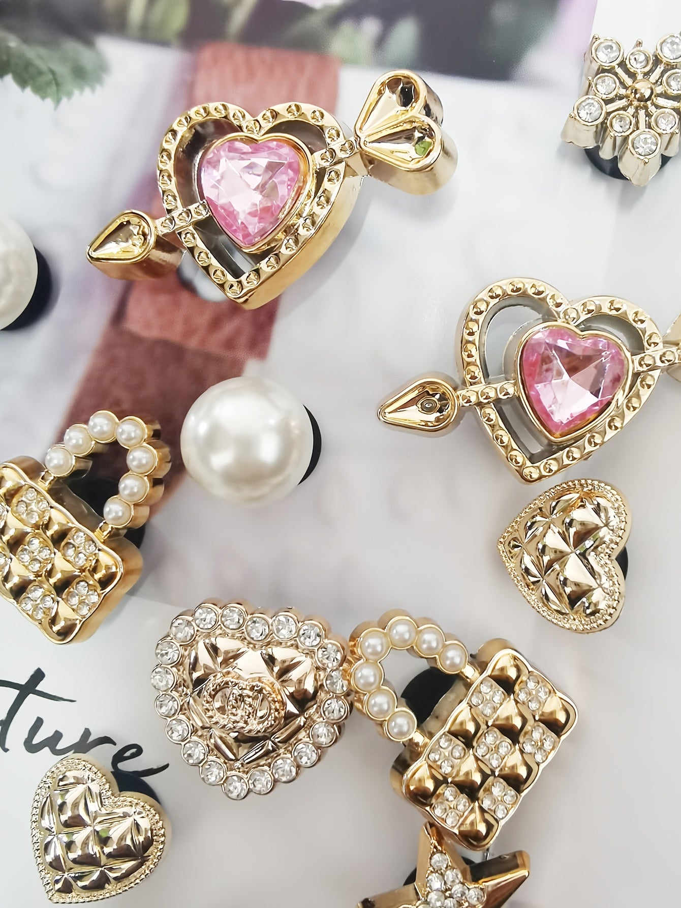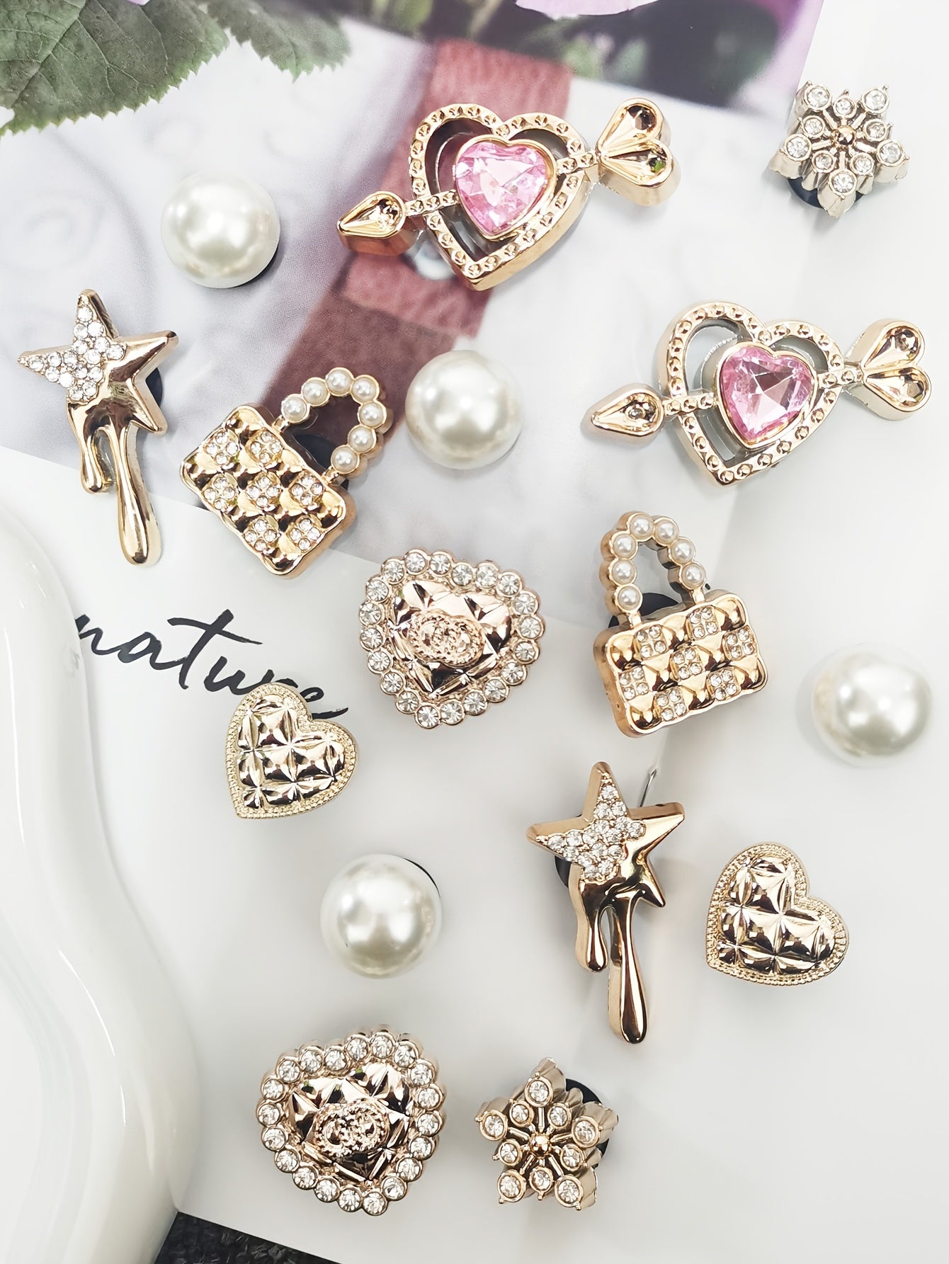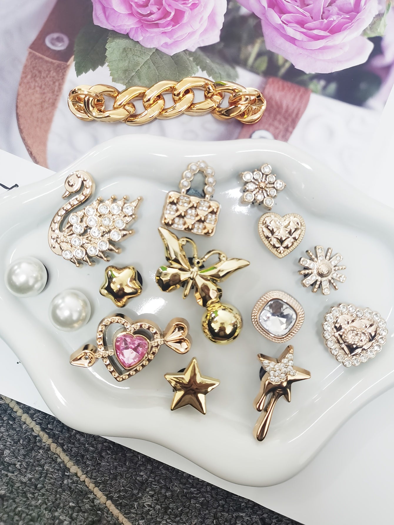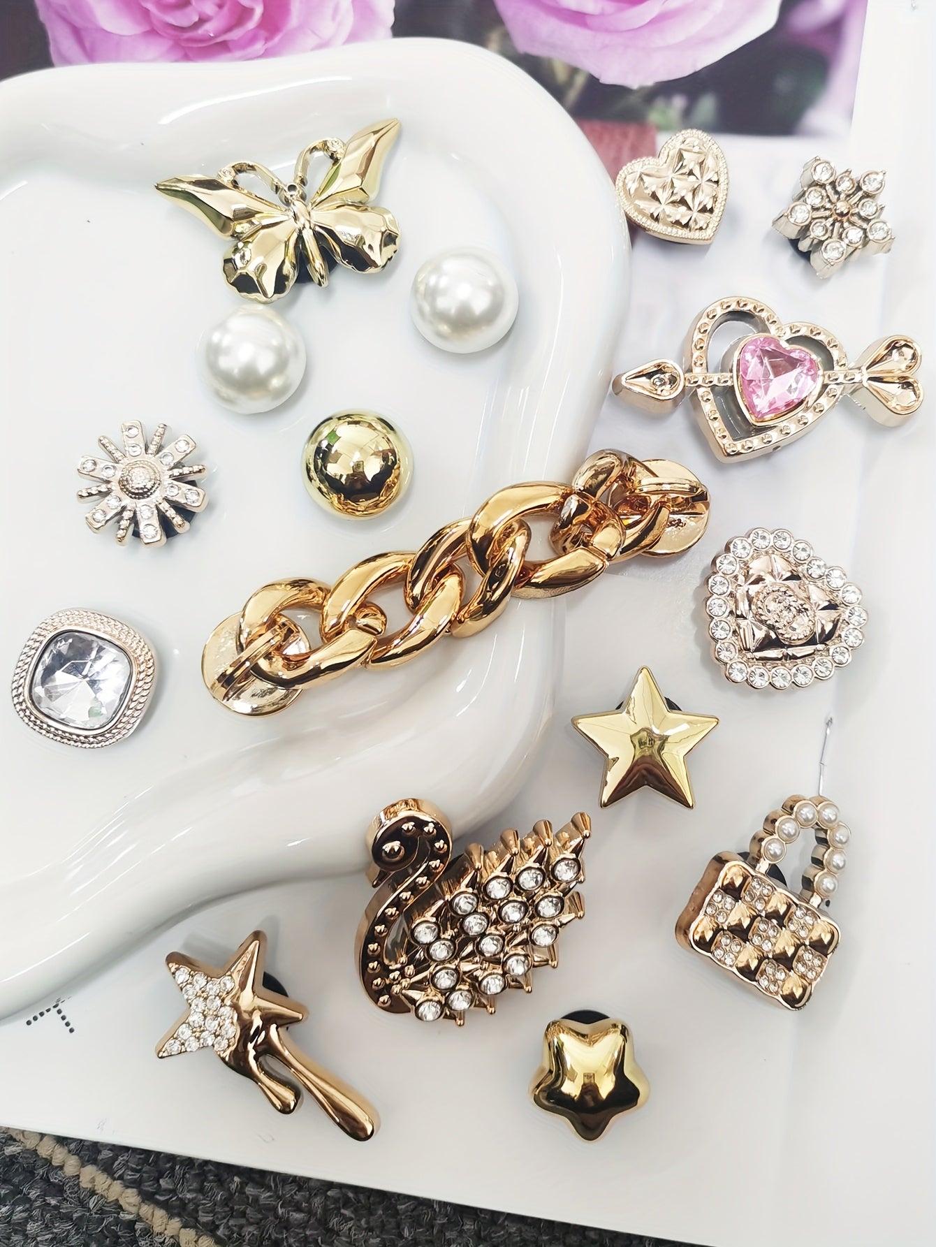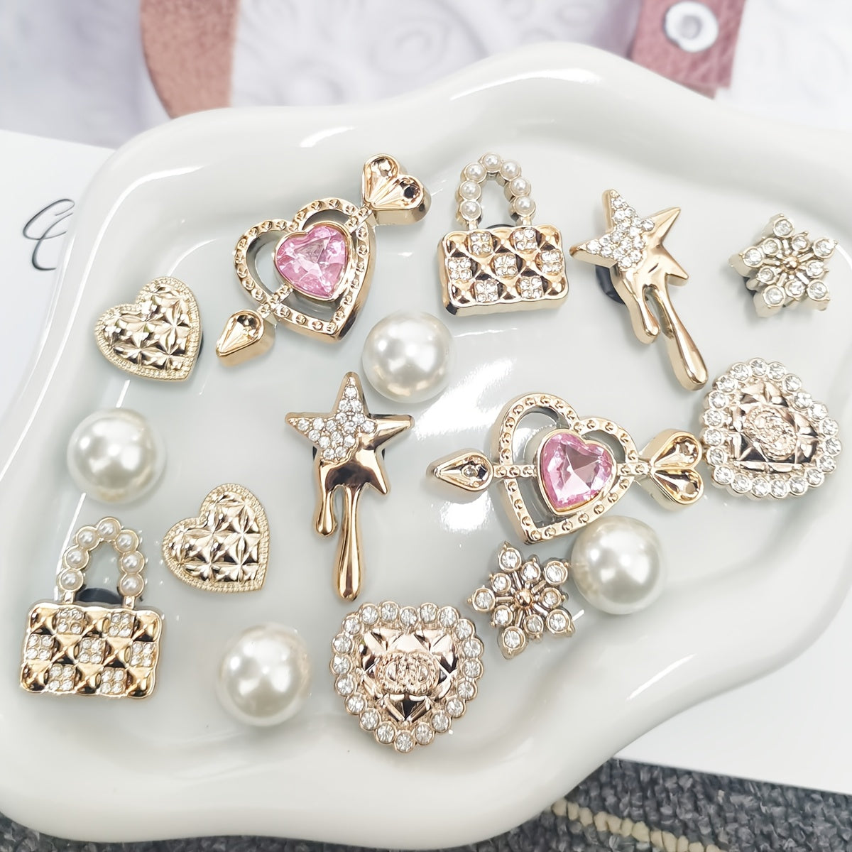 Ensemble de 16 breloques de chaussures élégantes de couleur dorée avec strass