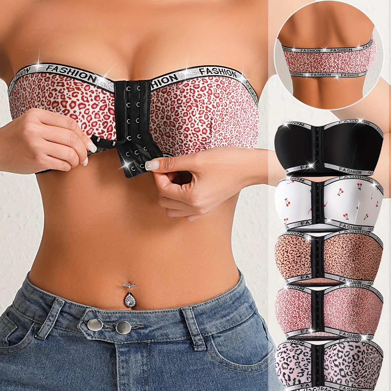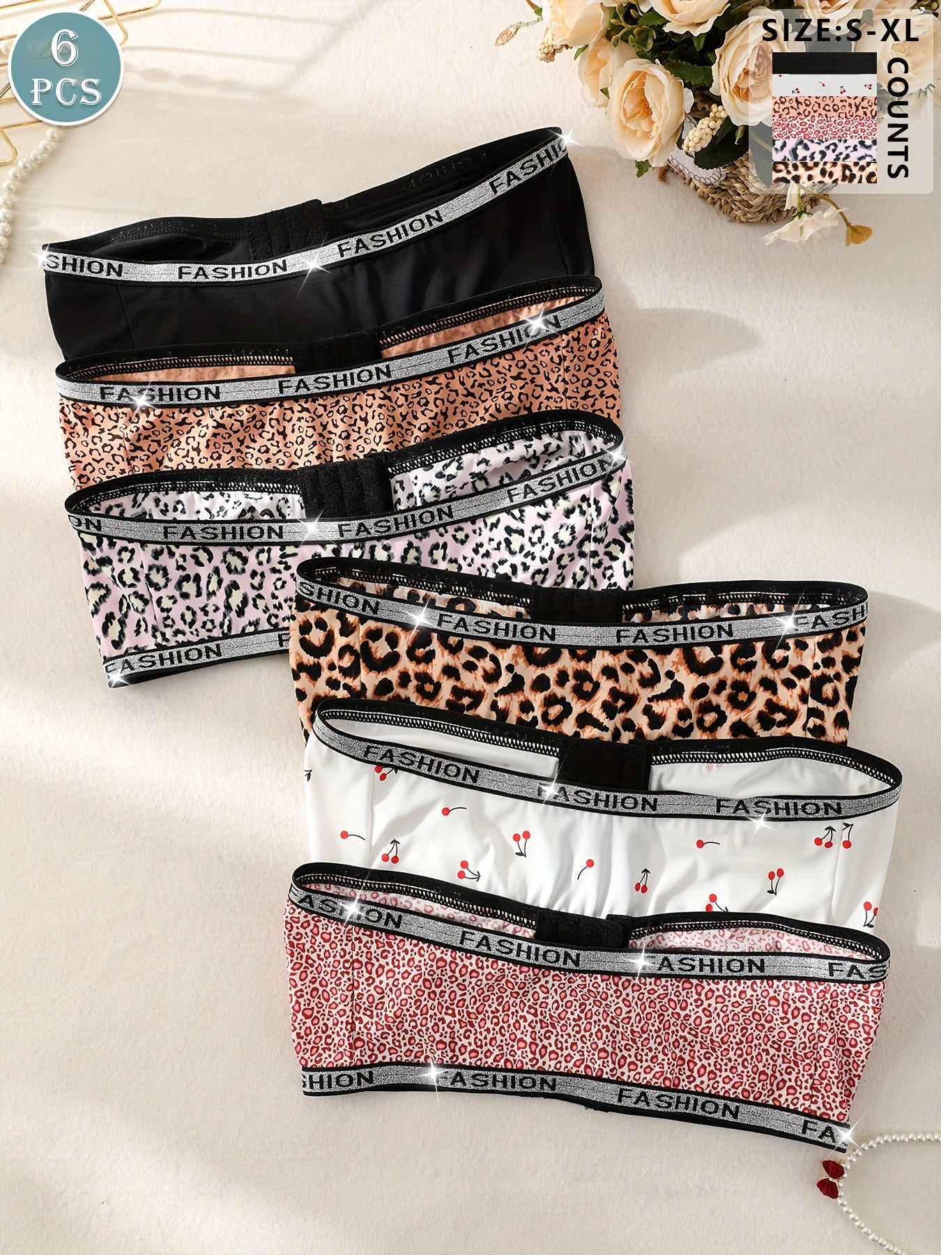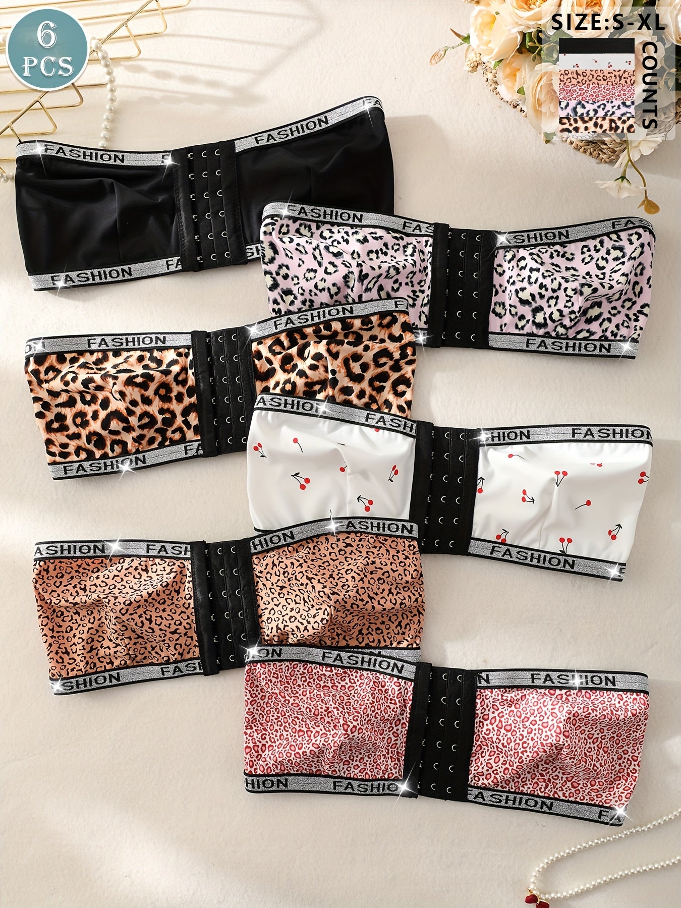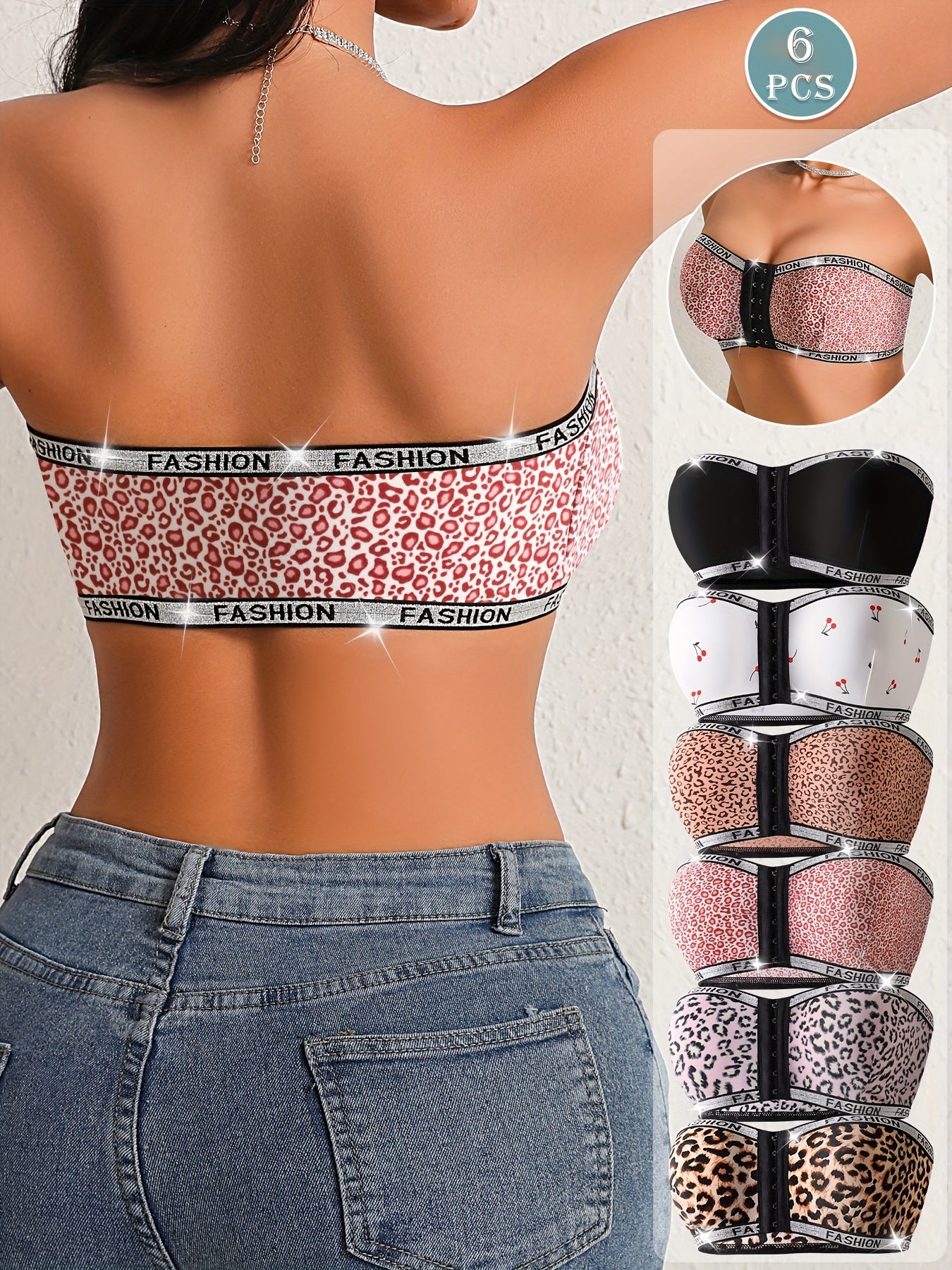 Ensemble de 6 soutiens-gorge sans bretelles à imprimé léopard