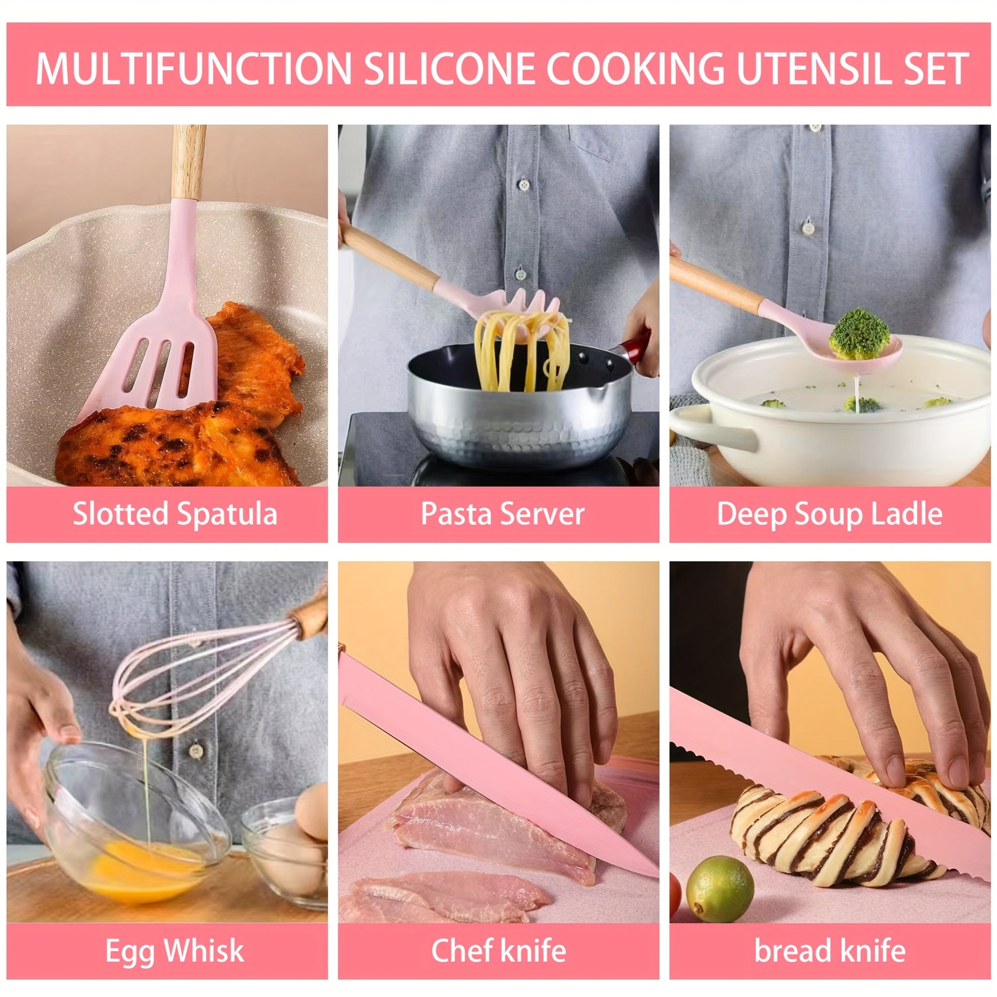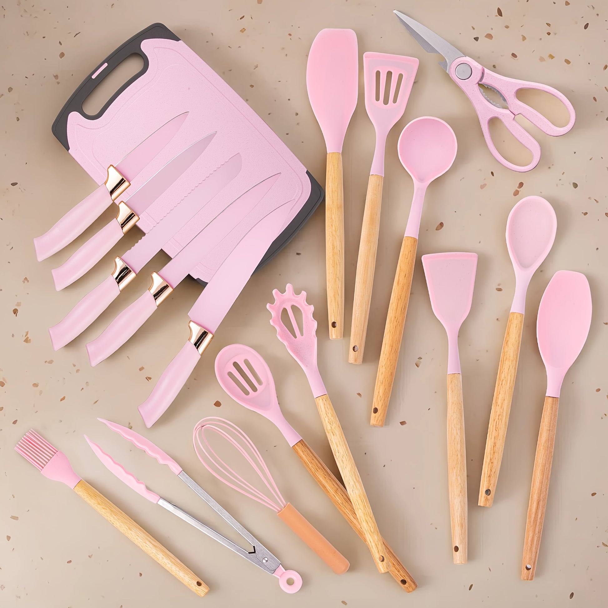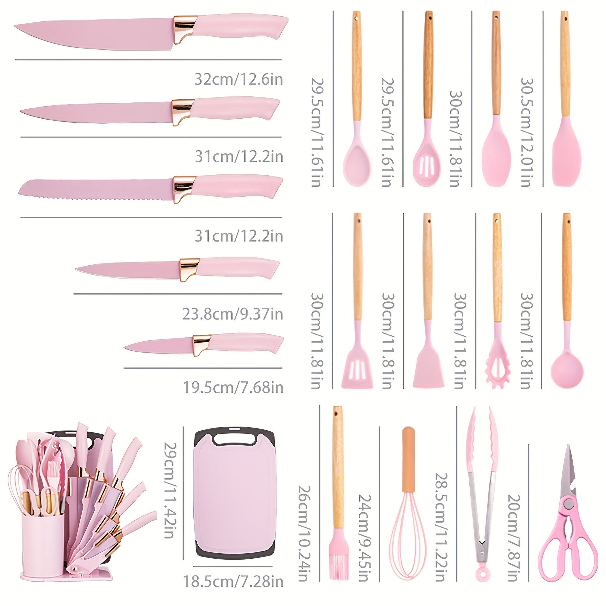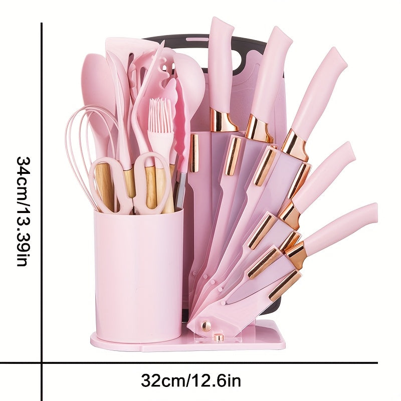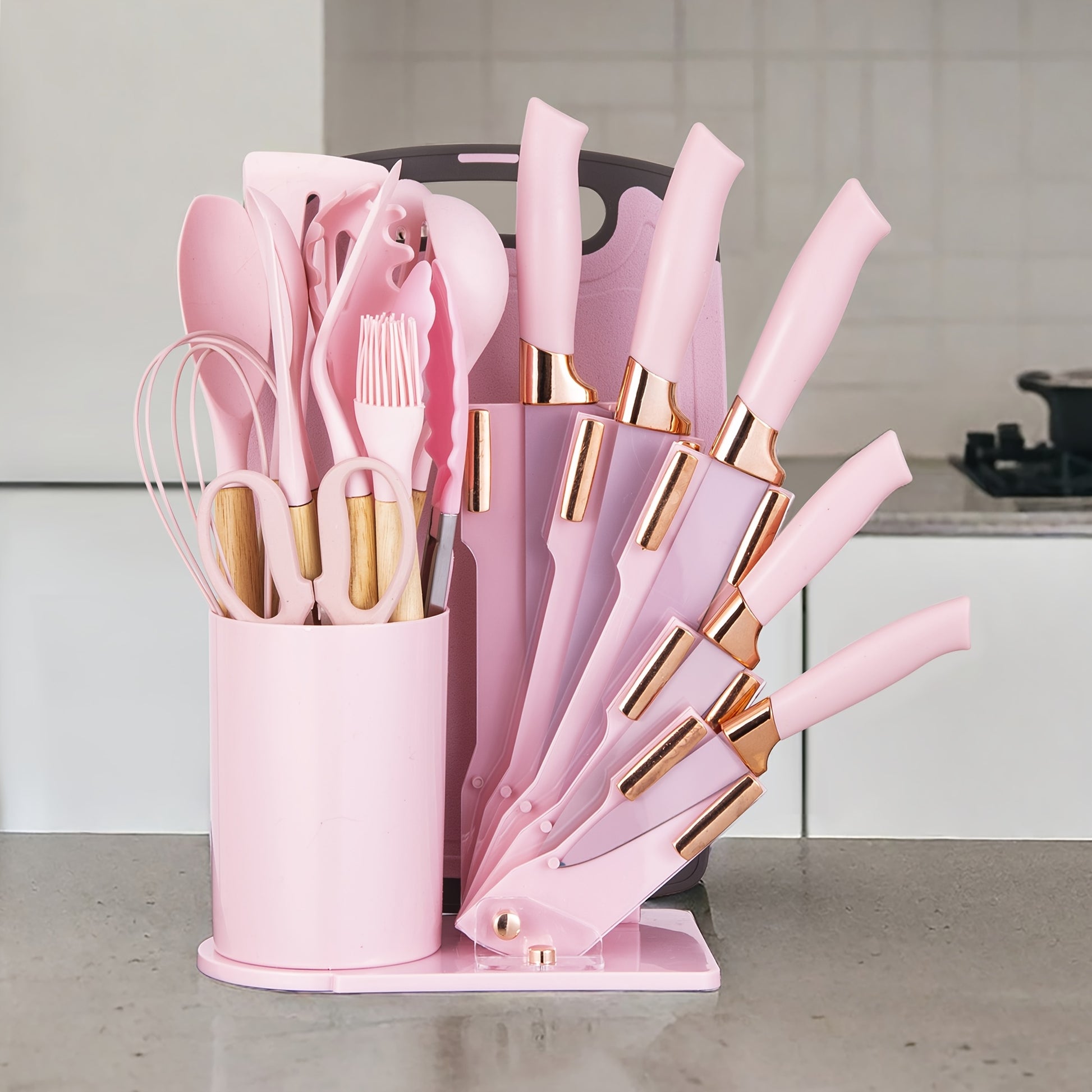 Ensemble de couteaux à steak roses élégants de 19 pièces avec support