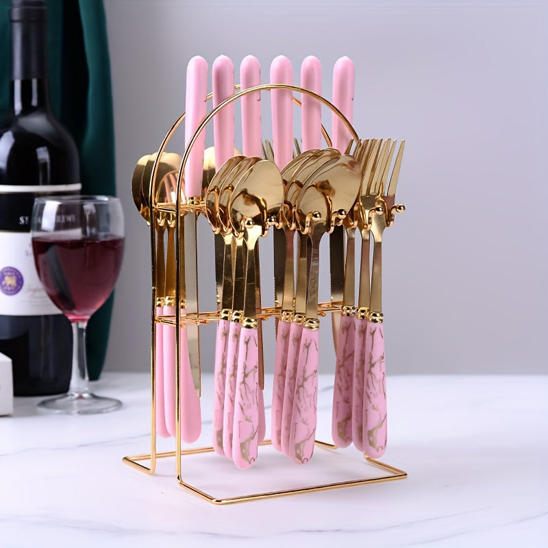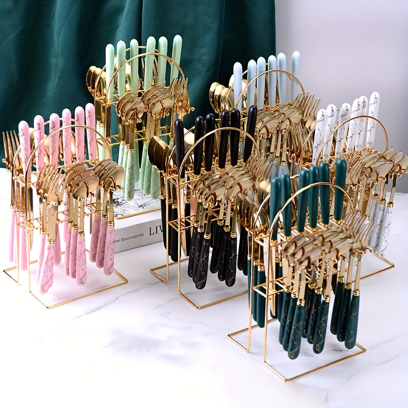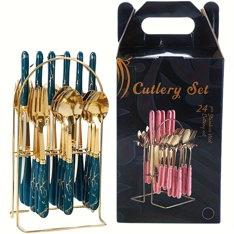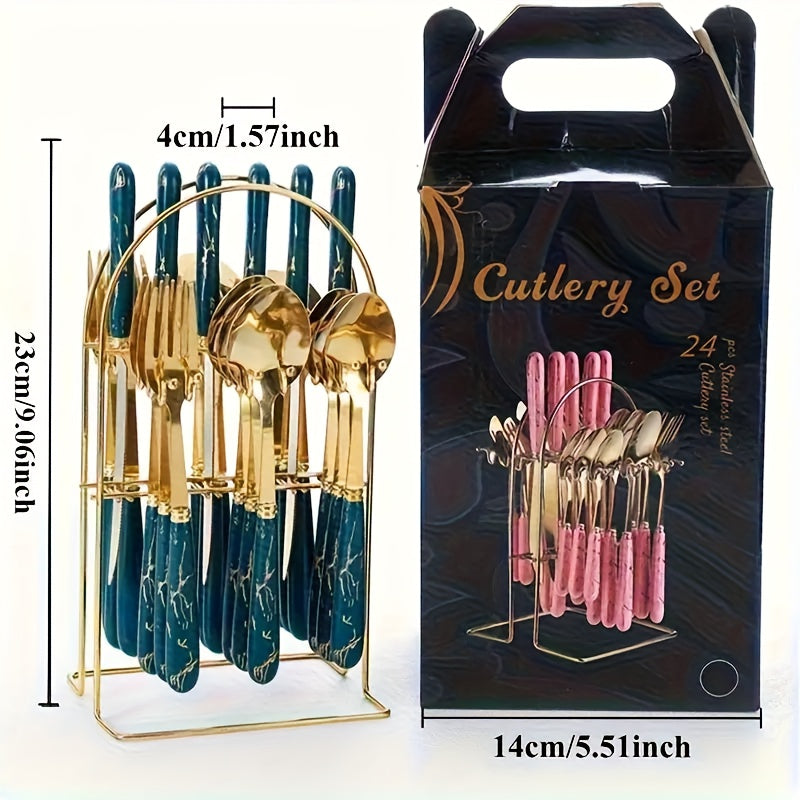 Ensemble de couverts robustes en acier inoxydable 24 pièces avec support