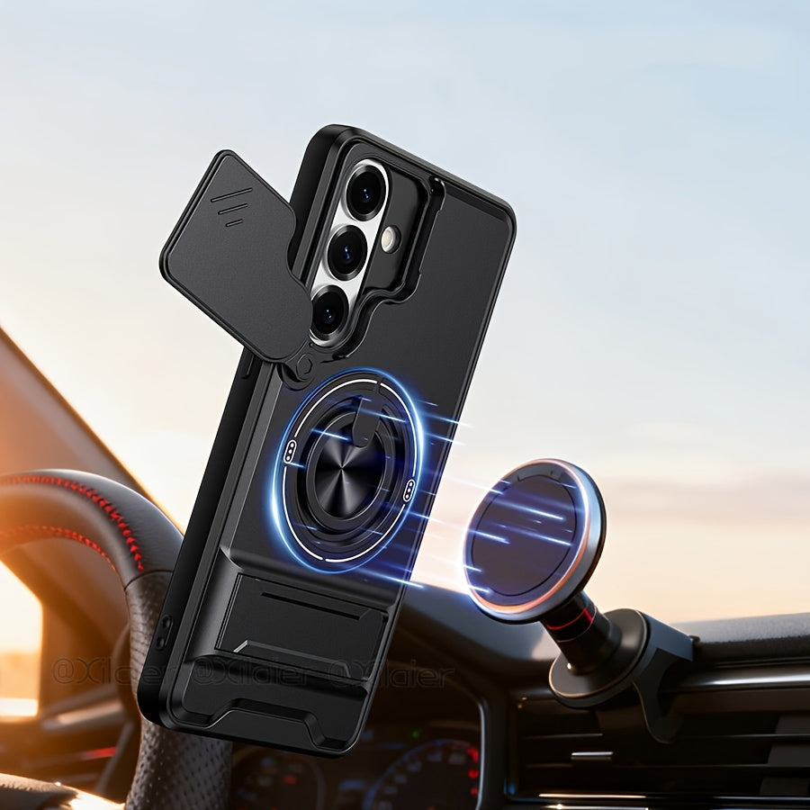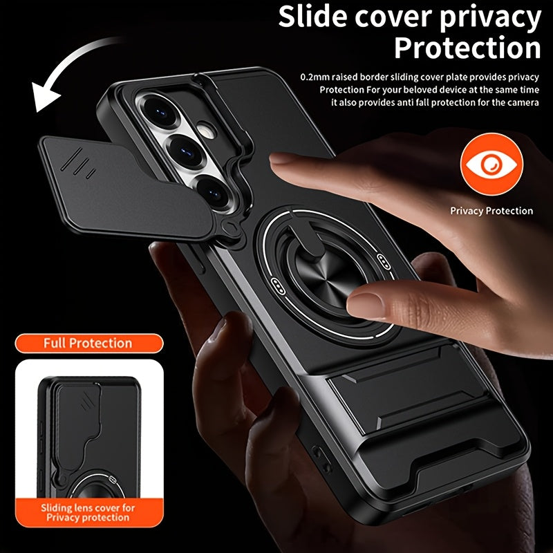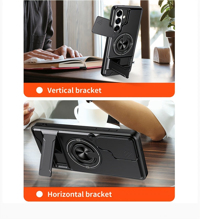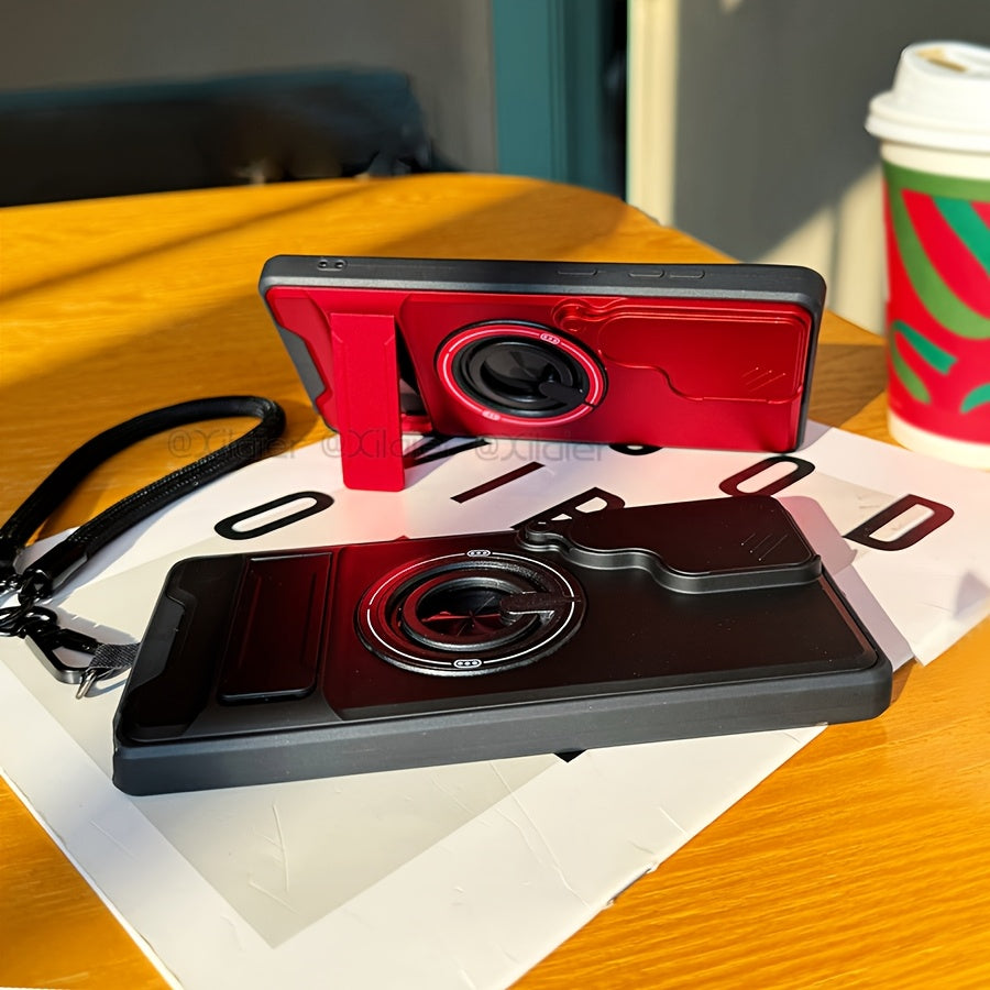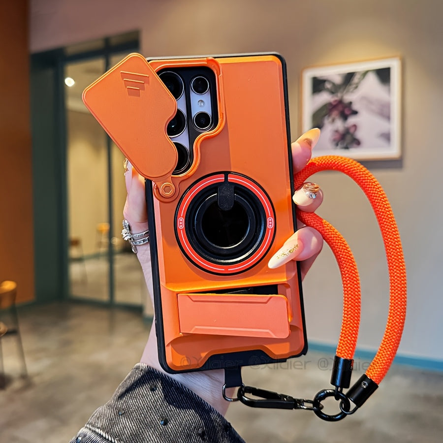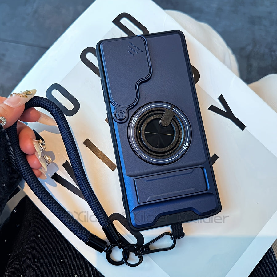 Étui de téléphone : pour Samsung Galaxy S26 Ultra, S25 Edge FE, S24 et S23 Ultra. Étui multifonctionnel avec dragonne, anneau rotatif à 360°, support pliable type barre et protection d'objectif coulissante. Compatible avec les supports de voiture.