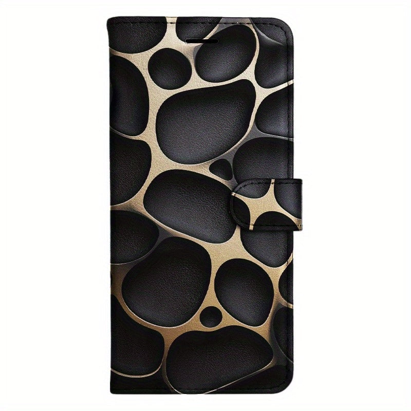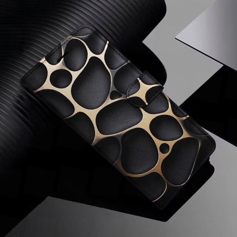Étui portefeuille magnétique à rabat avec rayures noires et dorées, SAMSUNG