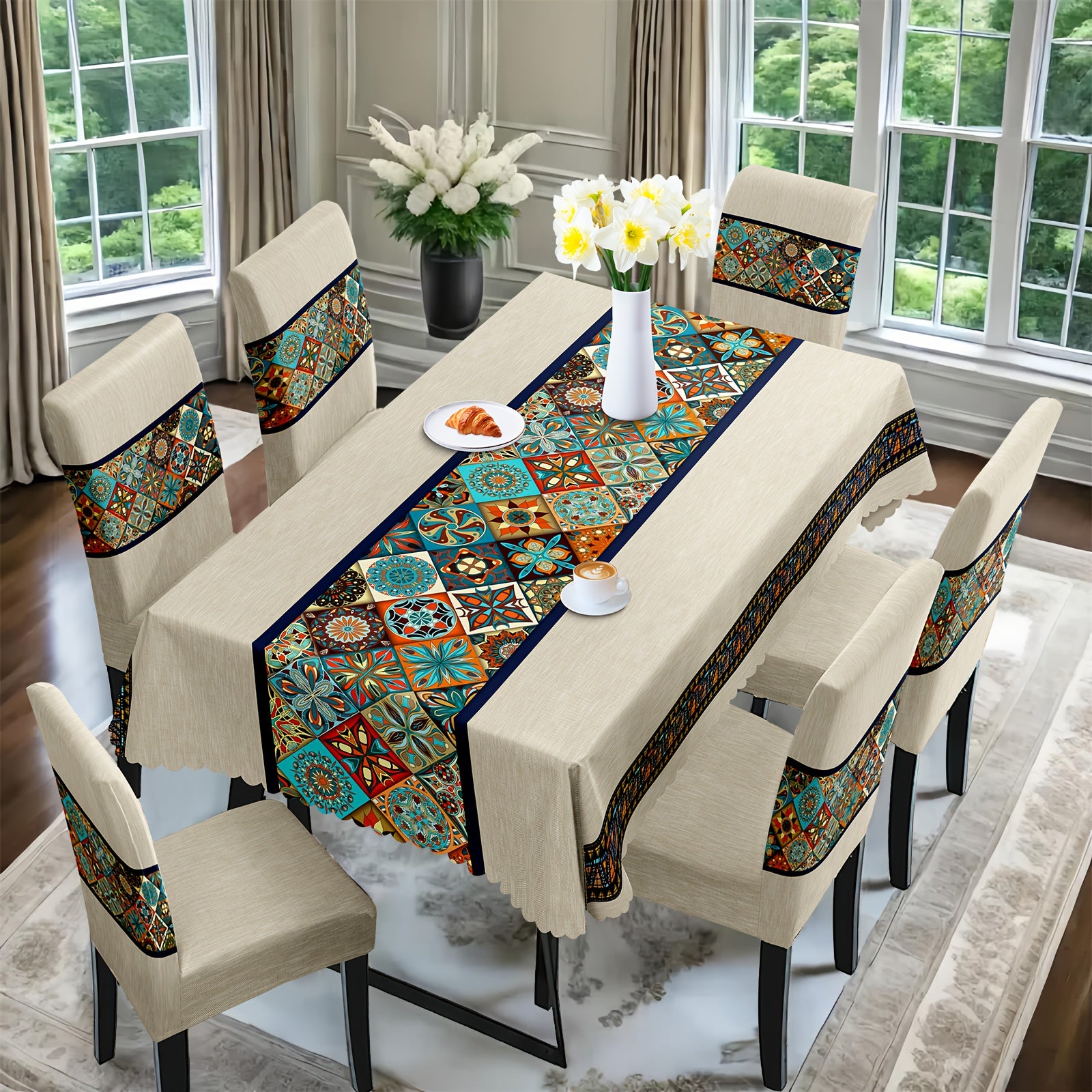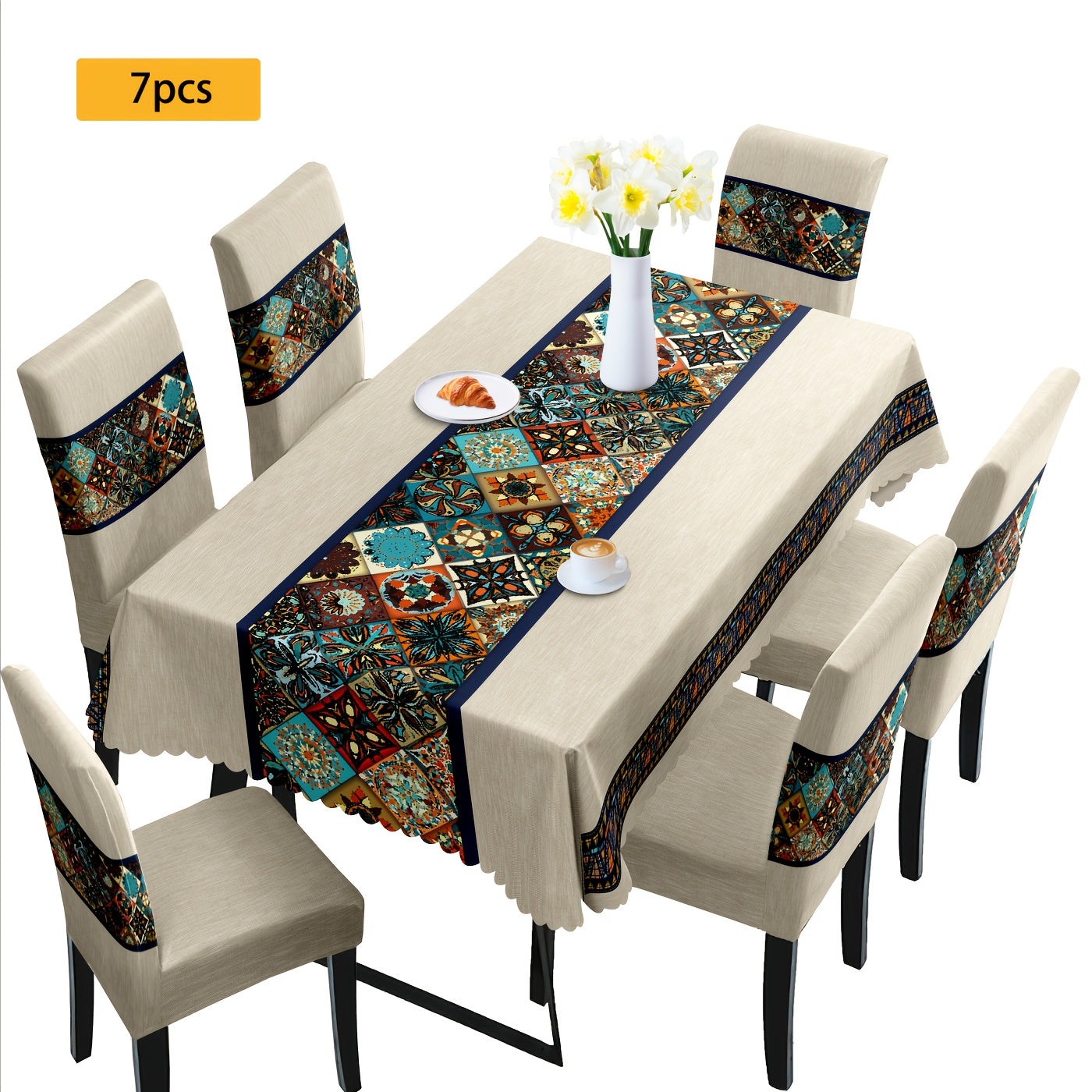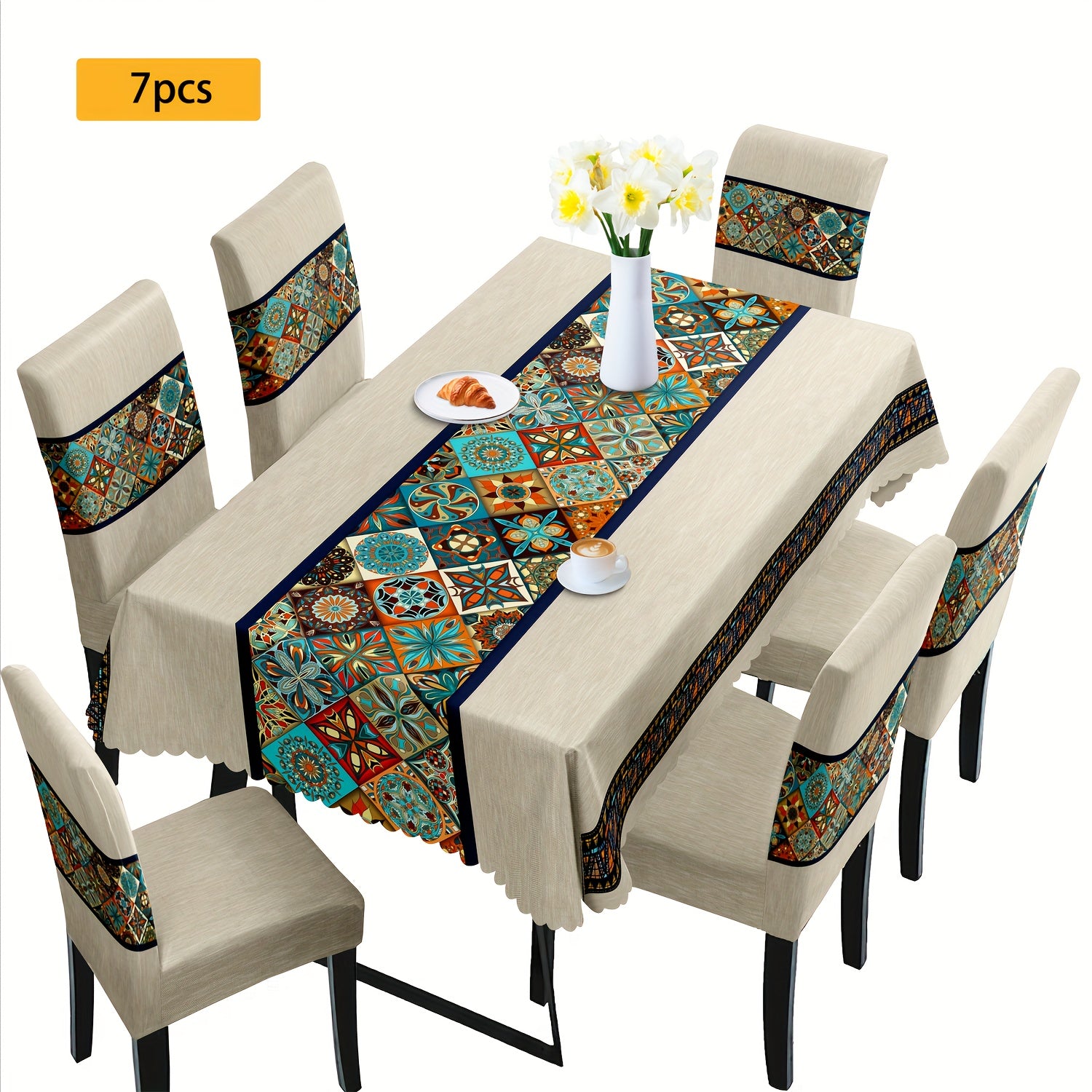 7 pièces Superbe ensemble de nappe rectangulaire + housse de chaise
