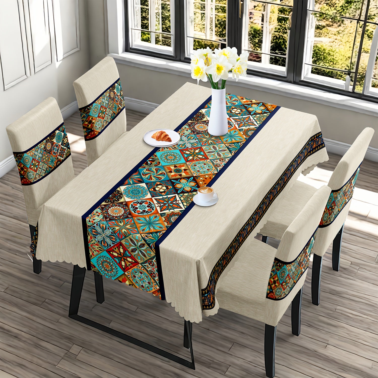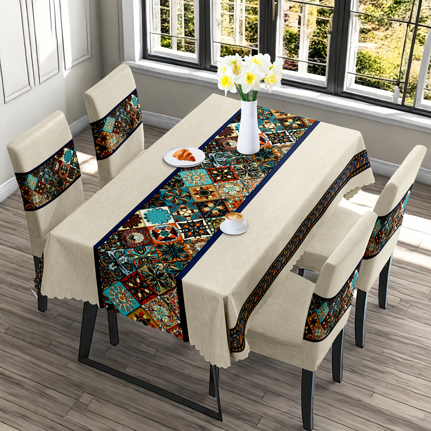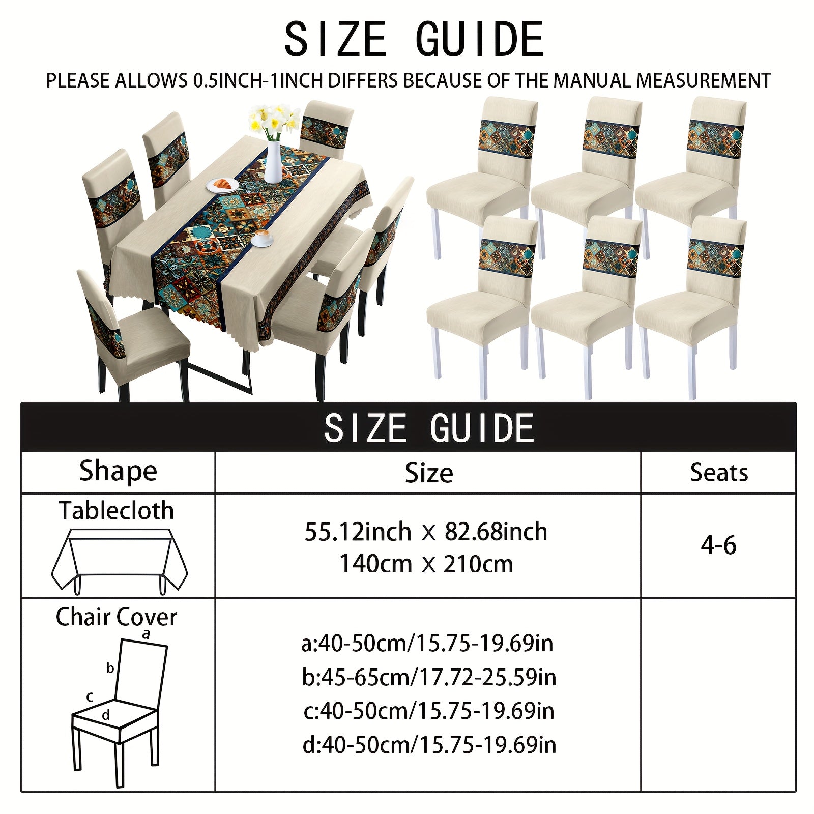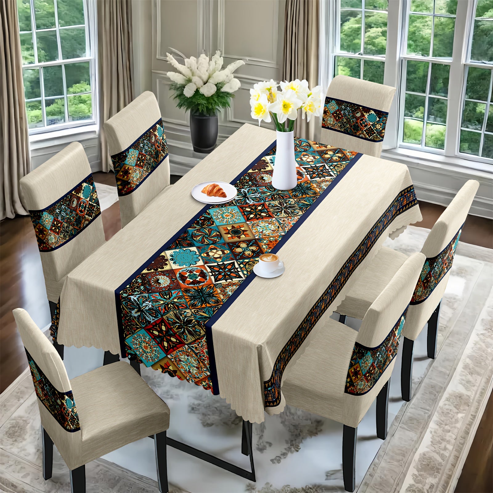 7 pièces Superbe ensemble de nappe rectangulaire + housse de chaise