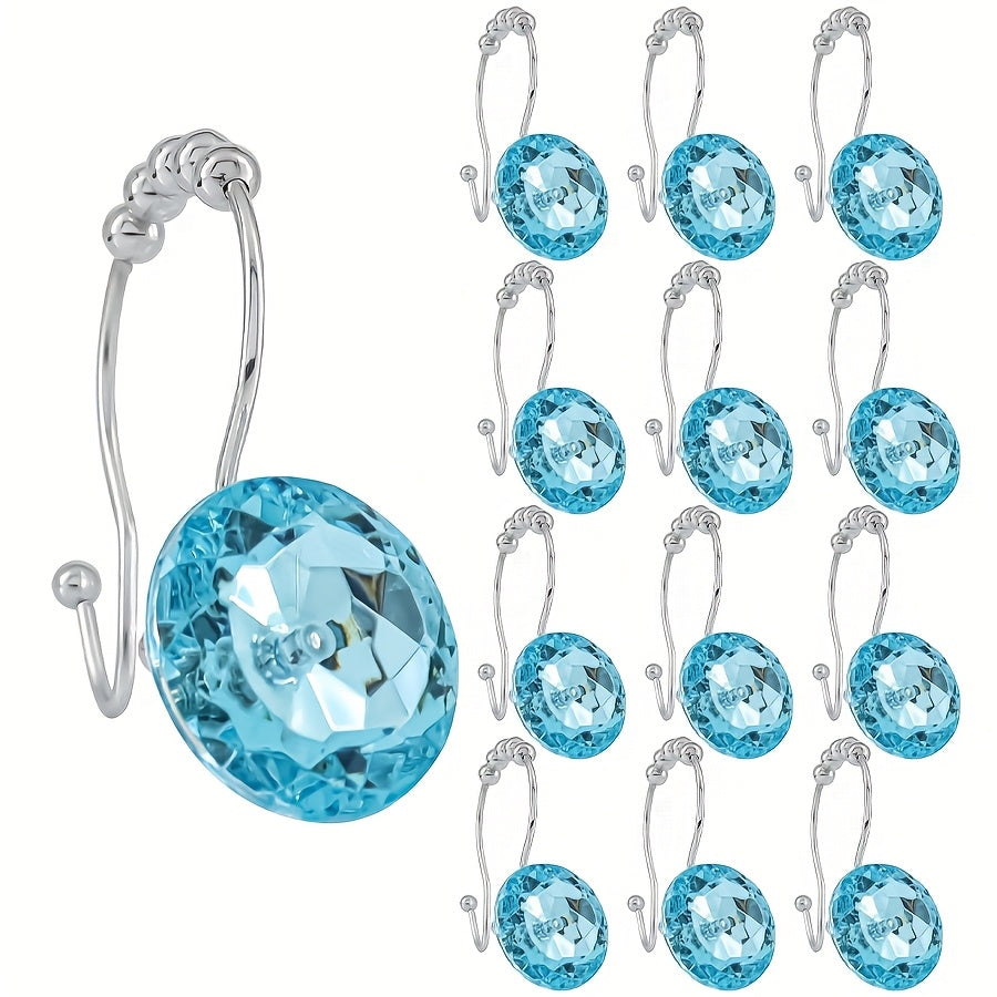 Lot de 12 crochets de rideau de luxe en acier inoxydable à paillettes bleues