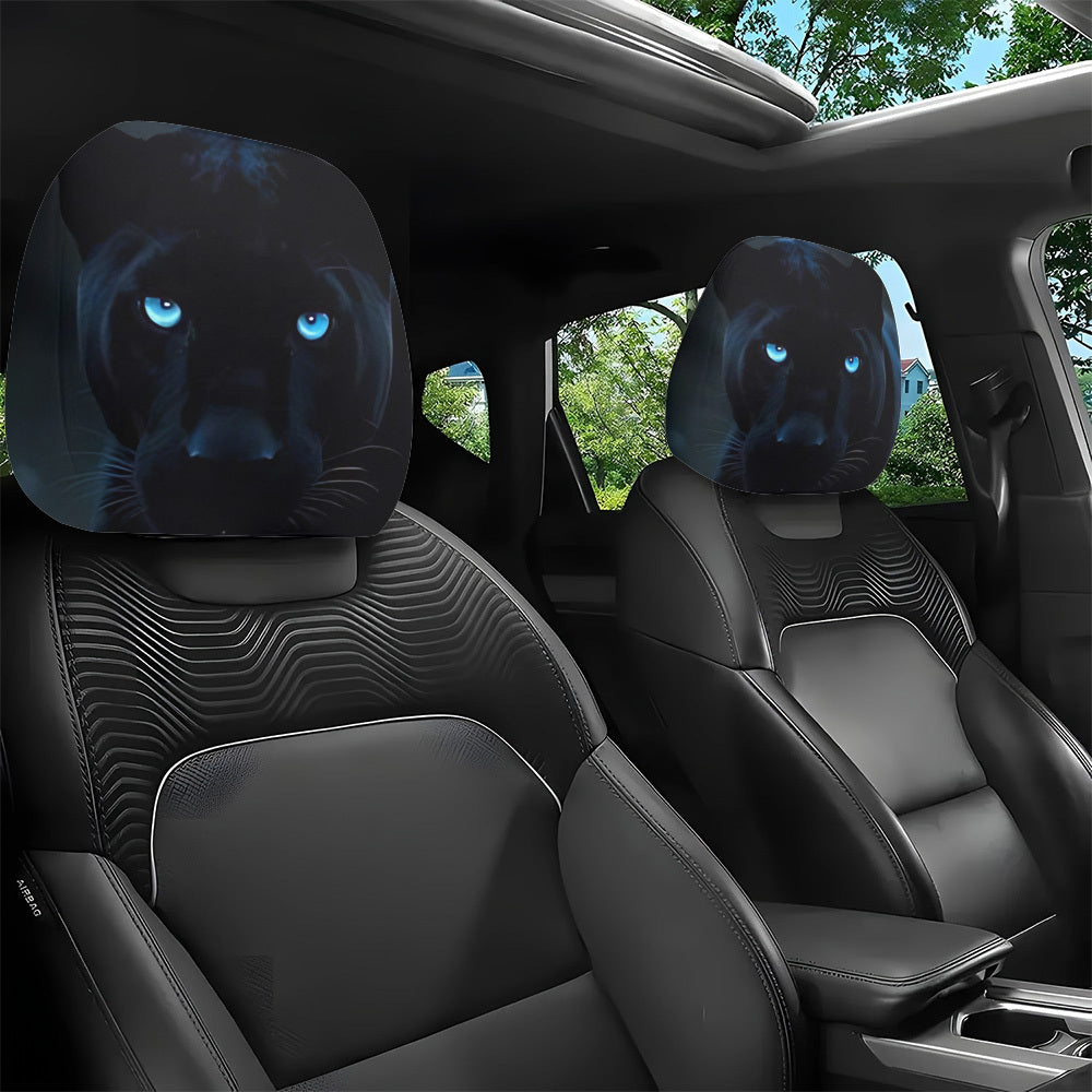 Lot de 2 housses d'appui-tête de voiture à imprimé léopard noir et bleu