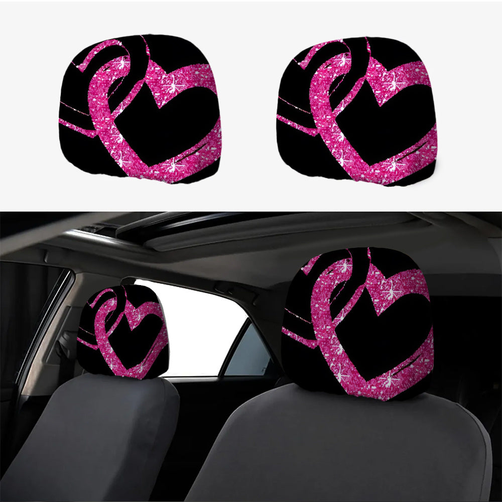 Lot de 2 housses d'appuie-tête de voiture à imprimé amour pailleté