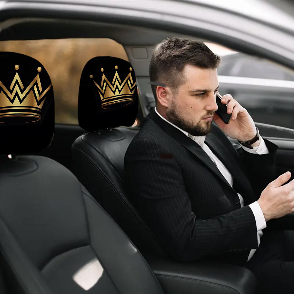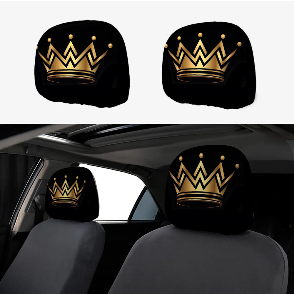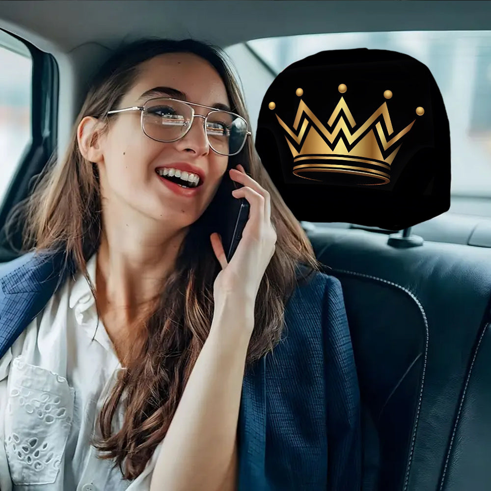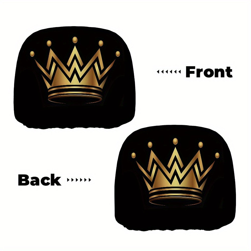 Lot de 2 housses d'appuie-tête de voiture à imprimé couronne dorée