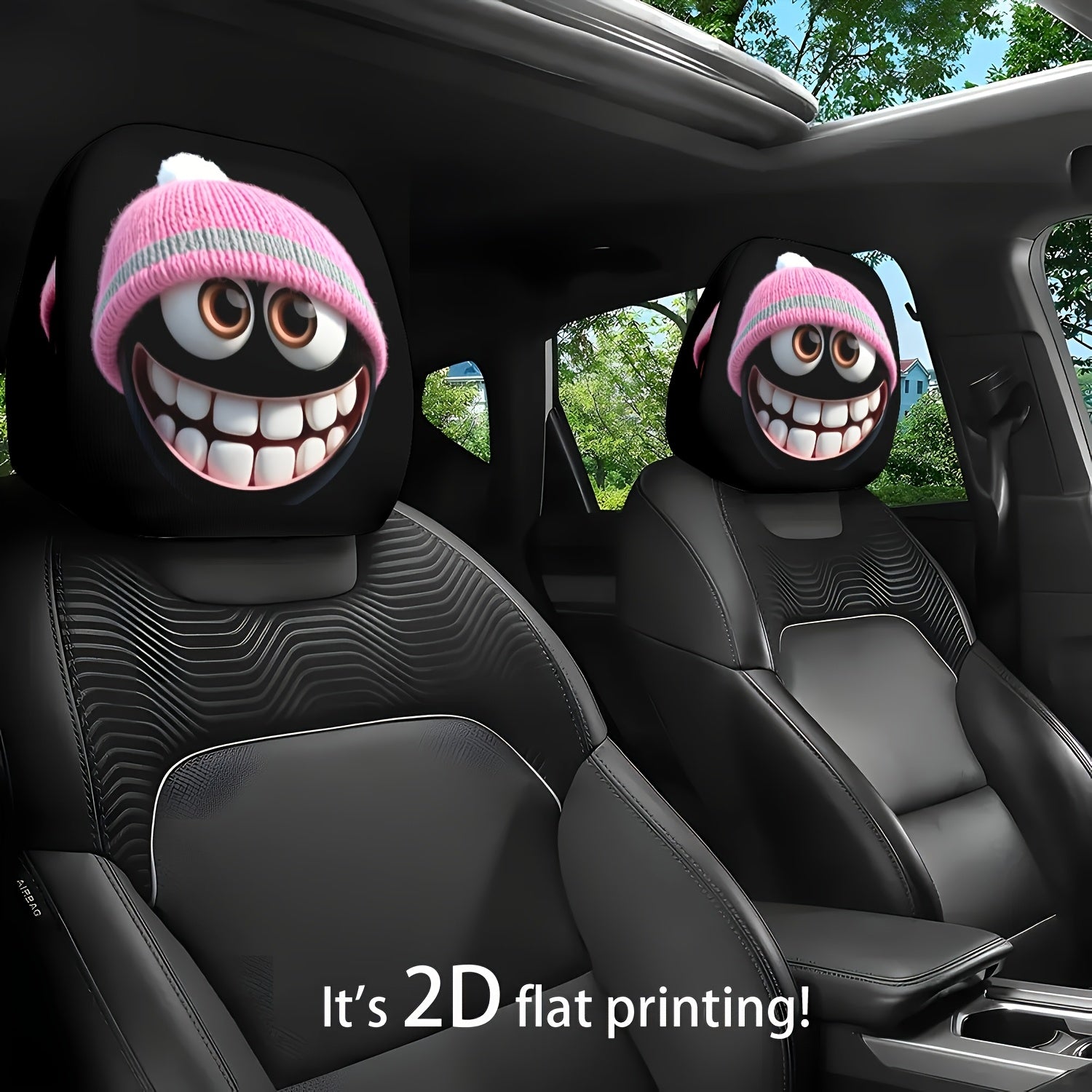 Lot de 2 housses de siège auto noires à motif tête