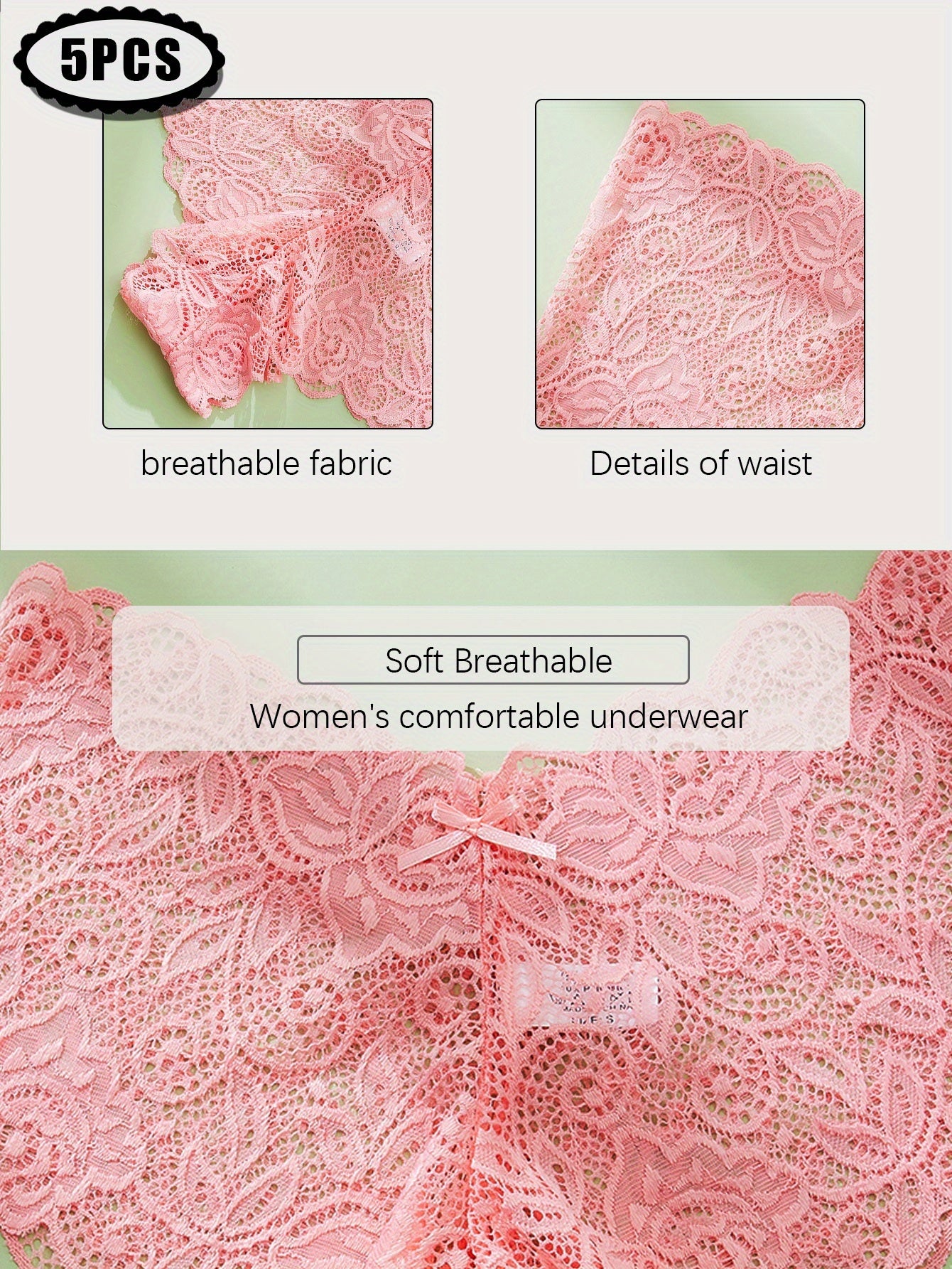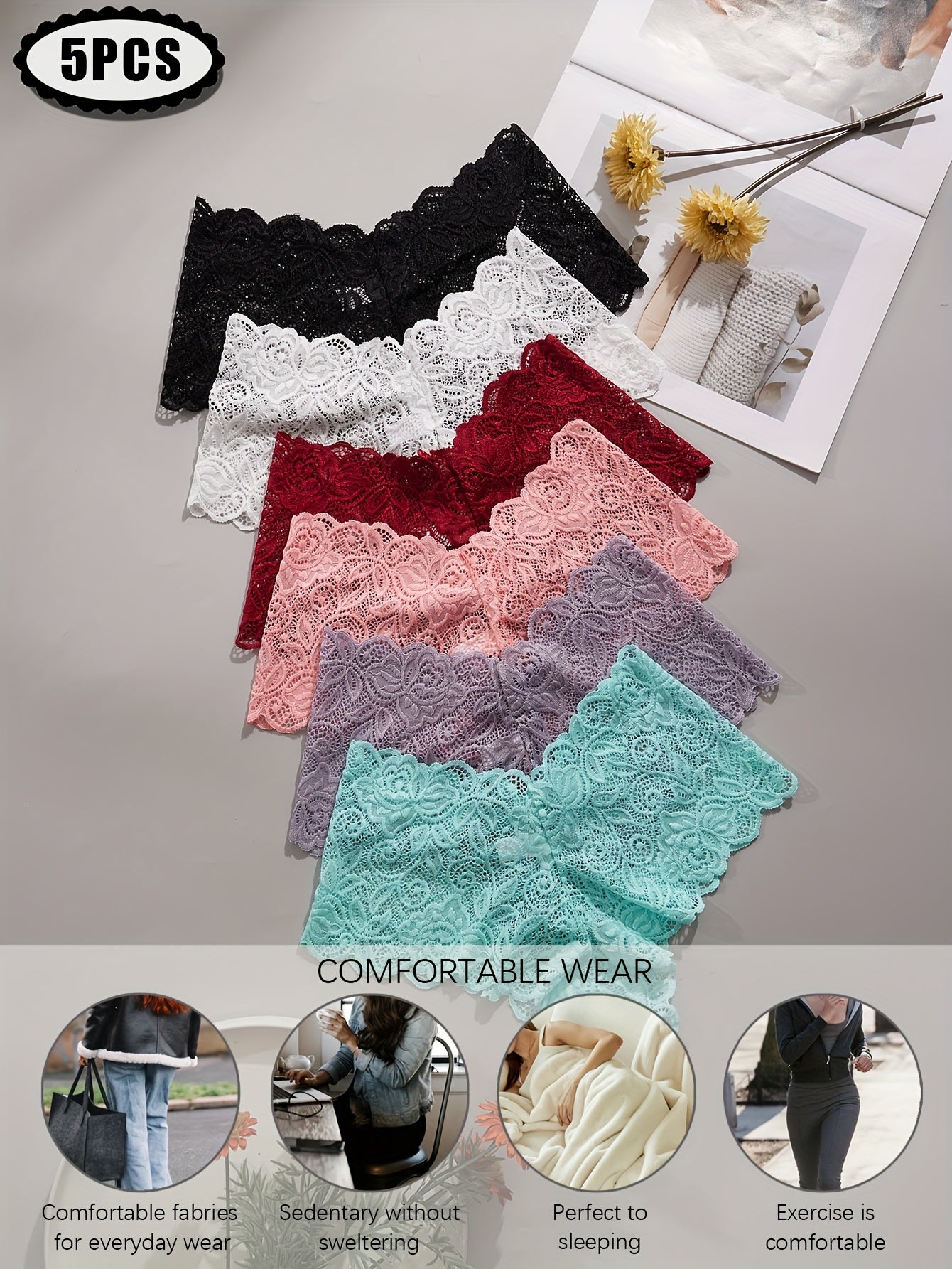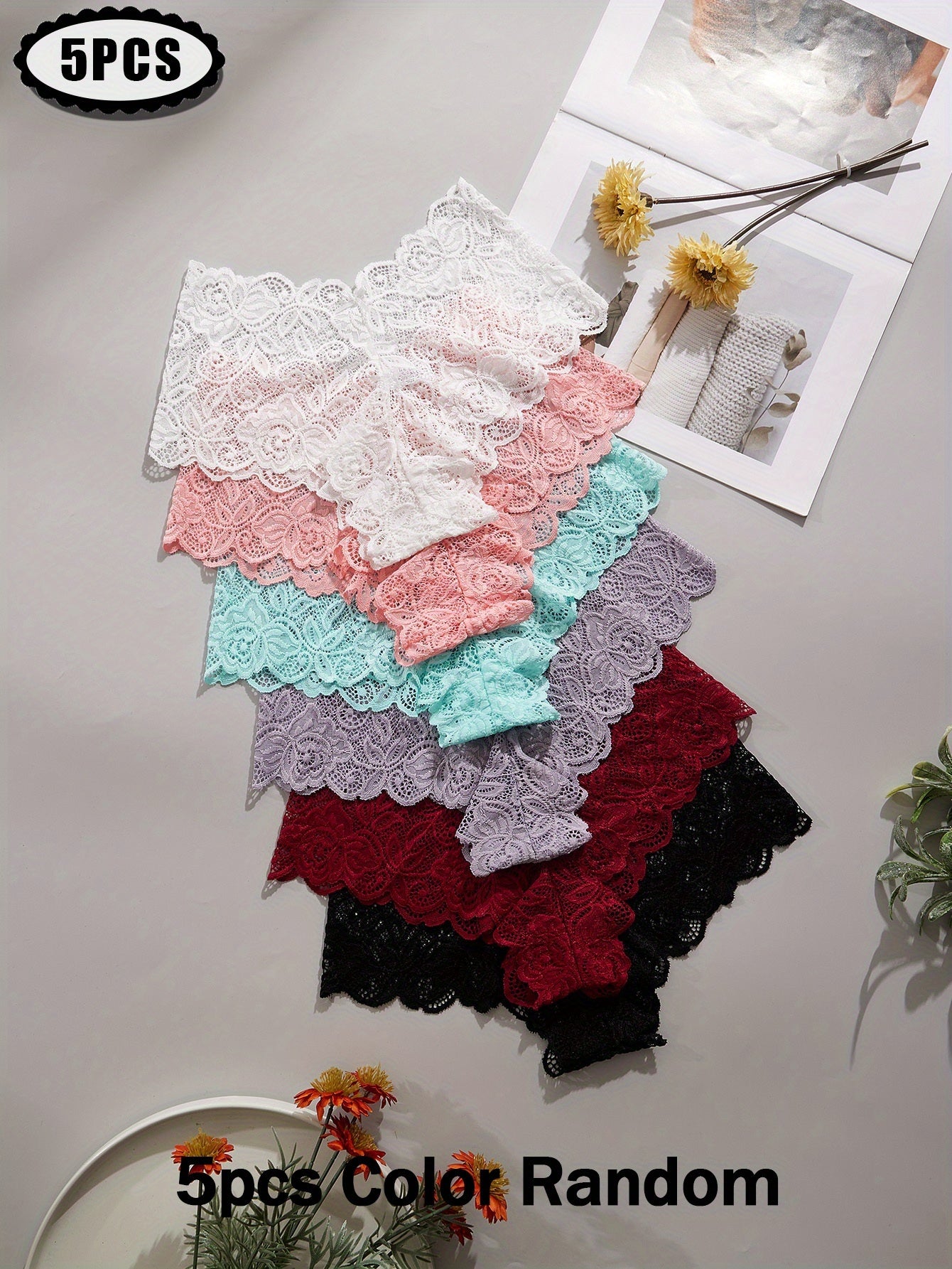 Lot de 5 culottes en dentelle taille basse pour femme, de couleurs aléatoires