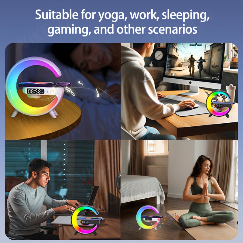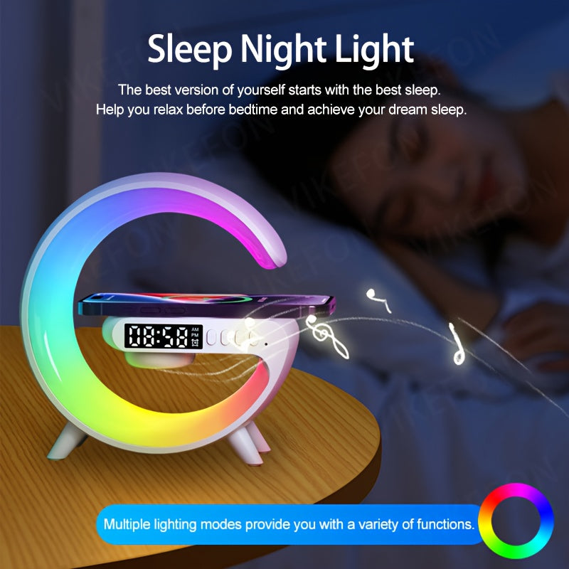 MINI Enceinte sans fil RGB multifonctionnelle, chargeur sans fil, support, radio-réveil FM