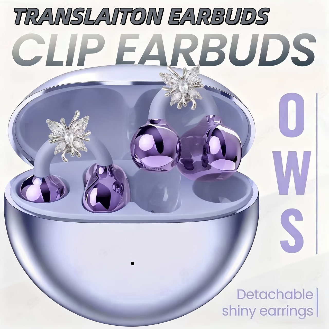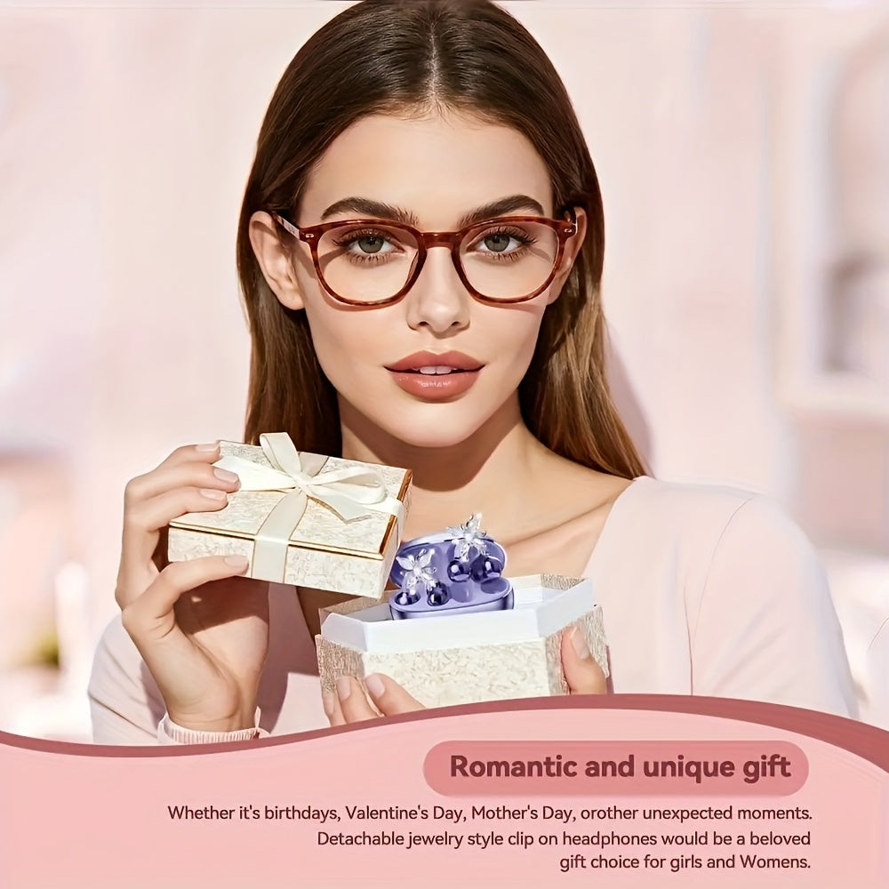 Nouveaux écouteurs intra-auriculaires multilingues à clipser, sans fil, avec boucles d'oreilles détachables en pierres synthétiques élégantes, son stéréo Hi-Fi 5.3, autonomie de 50 h, micro intégré, parfaits pour le sport, le travail, les études et les activités de plein air.