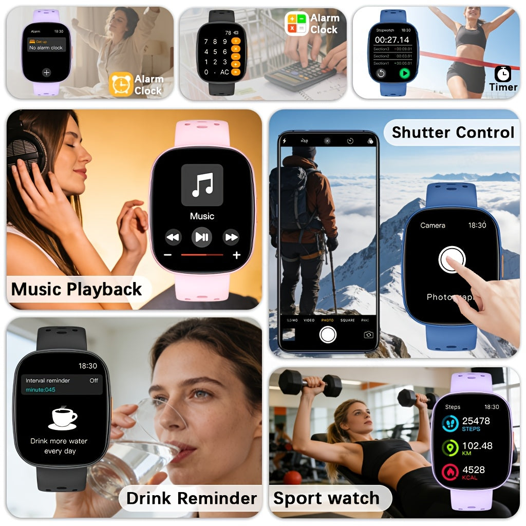 Nouvelle montre connectée, modes sportifs intégrés, appels et réponses sans fil, prévisions météo, notifications de messages, réveil, calculatrice, lecture de musique, déclencheur photo, montre connectée pour jeunes