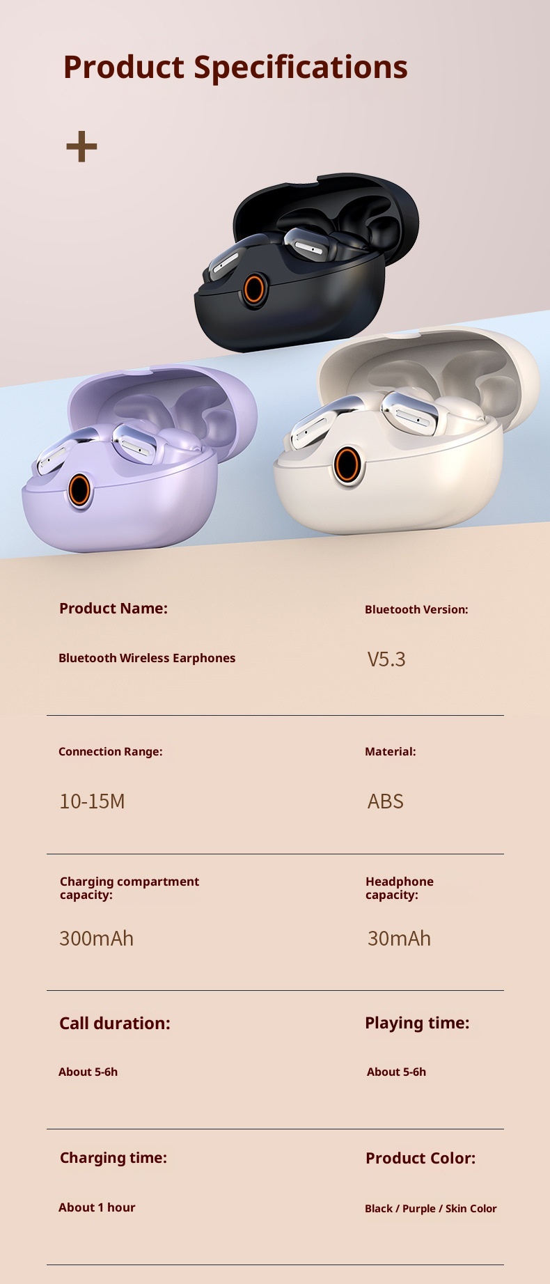 Functions: Waterproof, noise reduction, bone conduction, ultra-long life battery, call function, voice control, music support, e-sports low latency