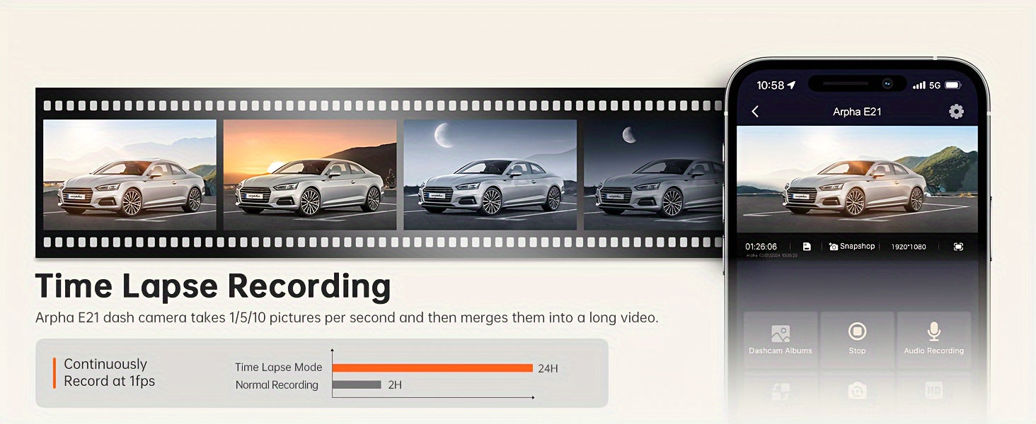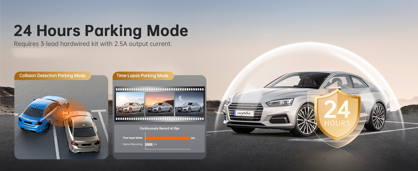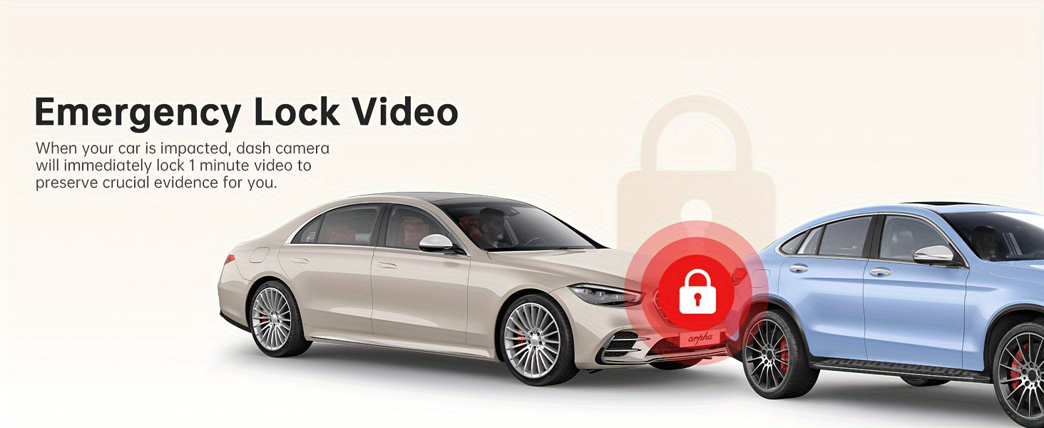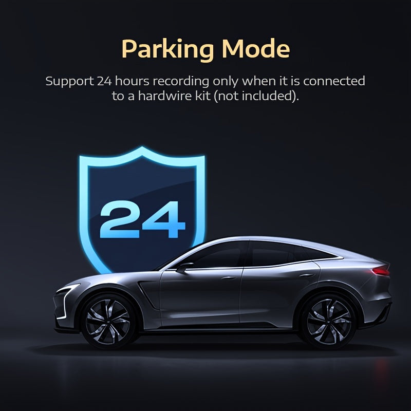 Rétroviseur 10'' à écran tactile complet, double caméra de tableau de bord, caméra de tableau de bord avant 1080p et arrière 720p, contrôle par application avec WiFi et GPS, commande vocale en anglais, WDR, super vision nocturne, mode stationnement (nécessite une connexion mini H à 3 fils)