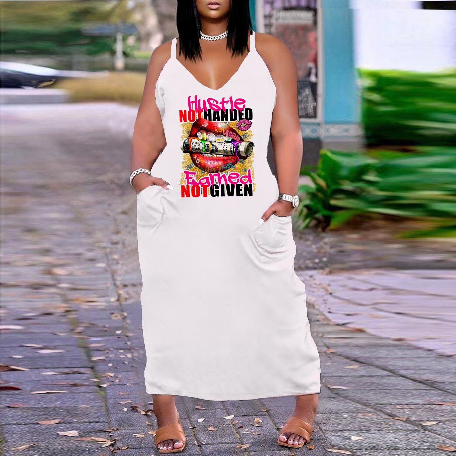 Robe imprimée sexy à col en V, coupe ample et ajustée, grande taille, style européen et américain