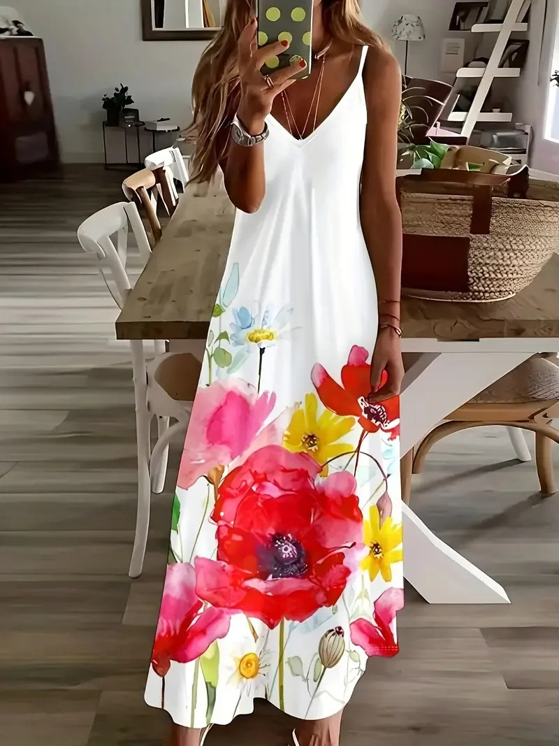 Robe longue sans manches pour femme, imprimée