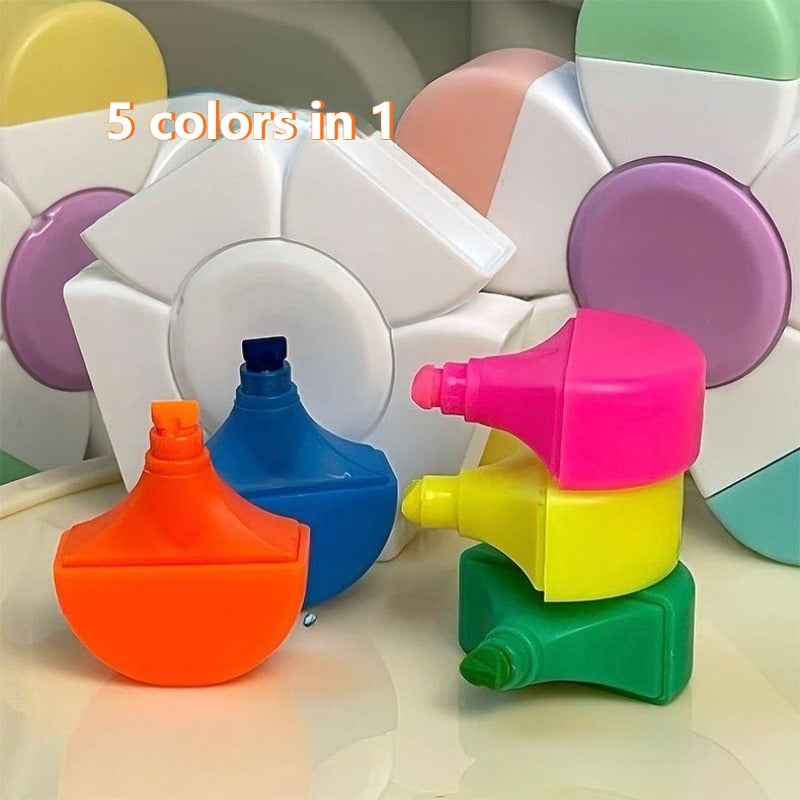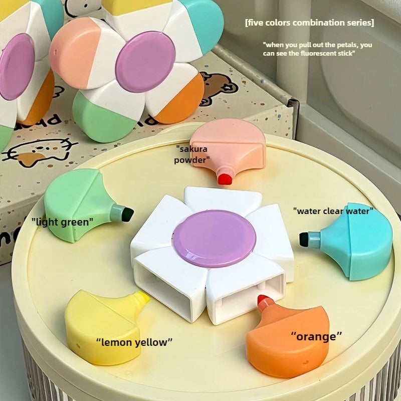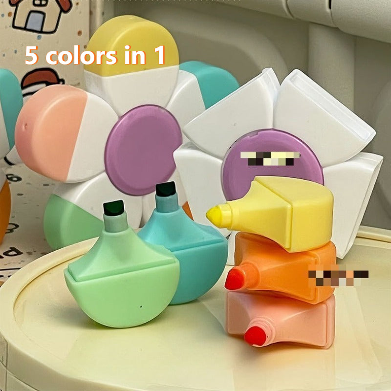 Surligneurs créatifs en forme de fleur, 5 couleurs en 1, stylo à dessin pour le journaling, la décoration