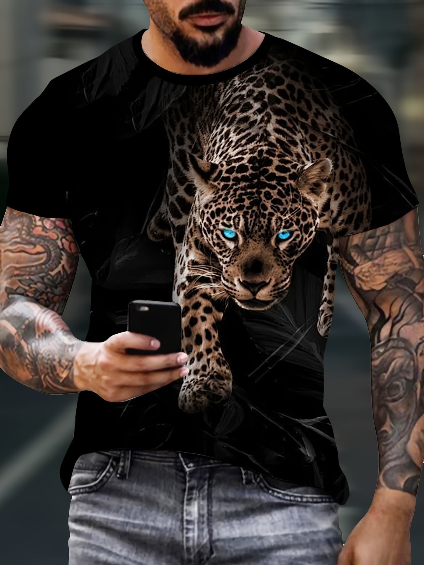 Ce t-shirt à manches courtes et col rond arbore un imprimé léopard élégant, apportant une touche audacieuse à votre garde-robe. Sa coupe classique assure un confort optimal tout au long de la journée, tandis que son design polyvalent s’adapte parfaitement à diverses occasions, du casual au plus habillé. Idéal pour celles et ceux qui souhaitent allier style et facilité au quotidien.