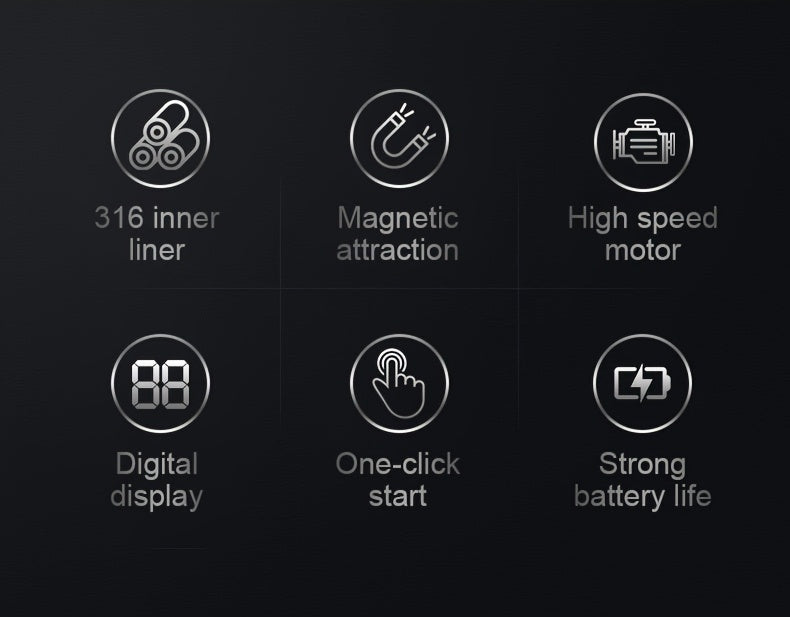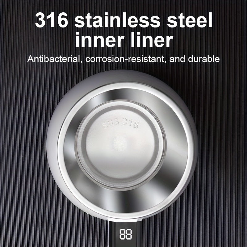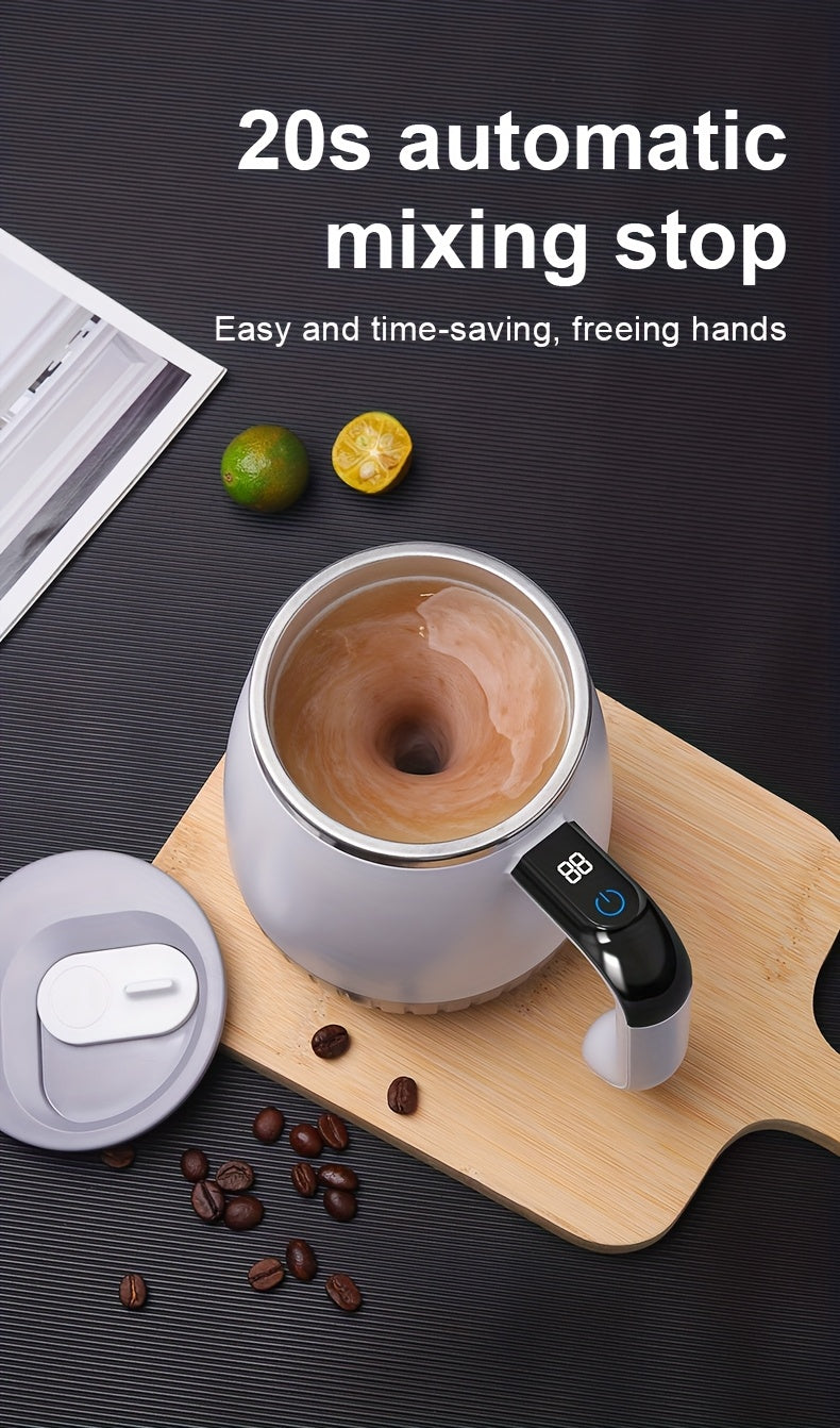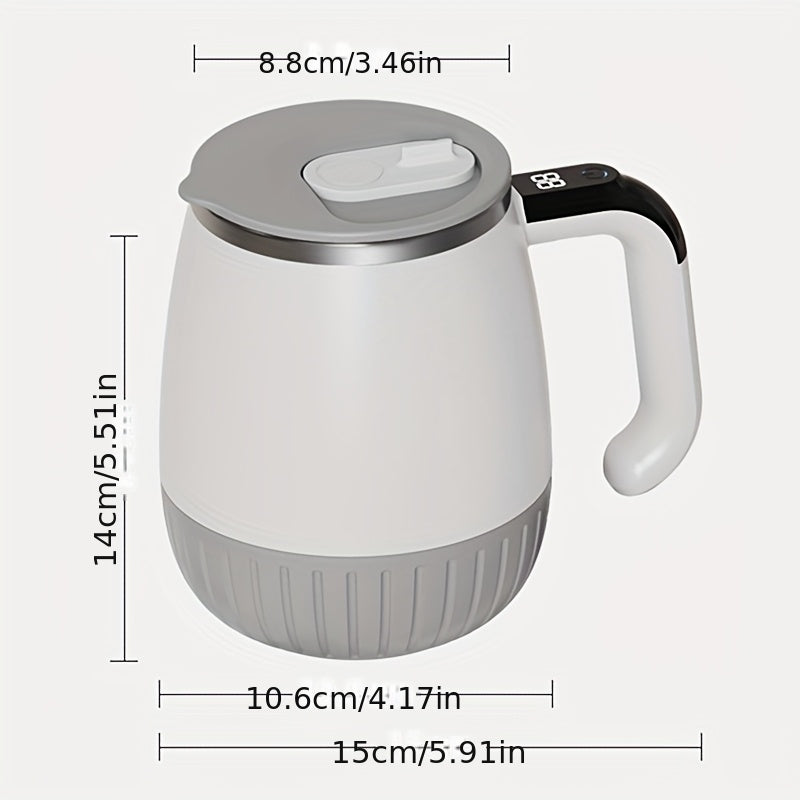 Tasse à mélanger entièrement automatique avec mesure intelligente de la température, en acier inoxydable 316, idéale pour le café, les milkshakes et les boissons protéinées, avec couvercle et poignée.
