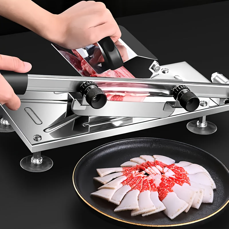 Cette trancheuse en acier inoxydable offre un réglage précis de l'épaisseur, idéale pour découper viandes, fruits et légumes avec uniformité et finesse. Sa robustesse garantit une utilisation durable en cuisine professionnelle ou domestique, tout en facilitant un contrôle optimal pour des tranches régulières et nettes. Parfaite pour améliorer la préparation de vos plats grâce à une découpe précise et sécurisée.
