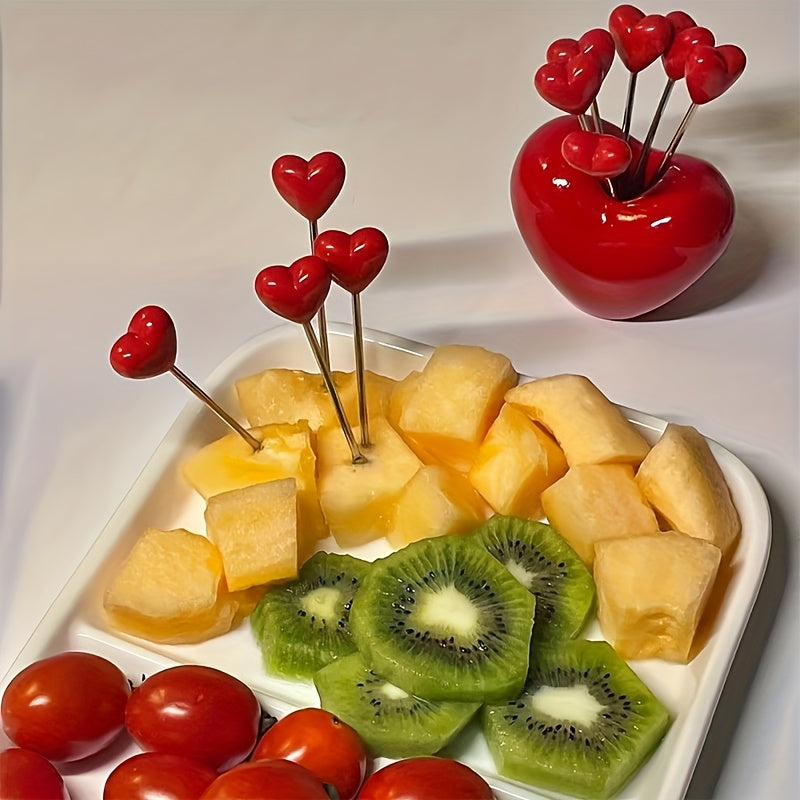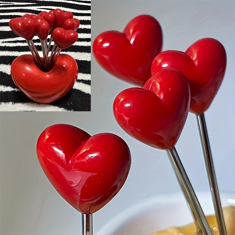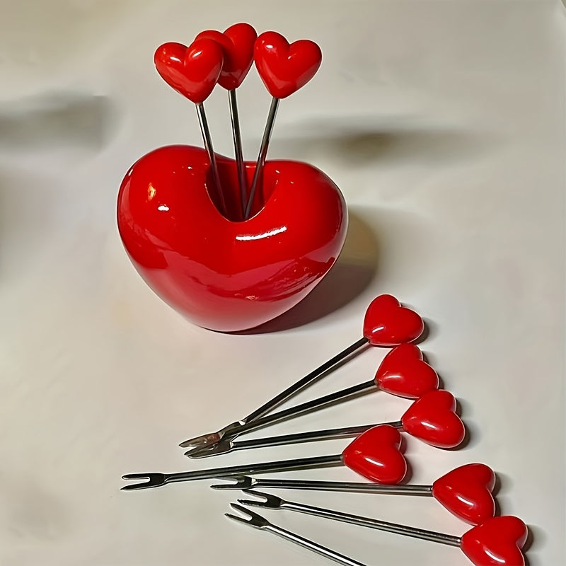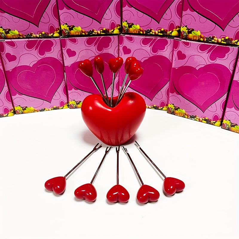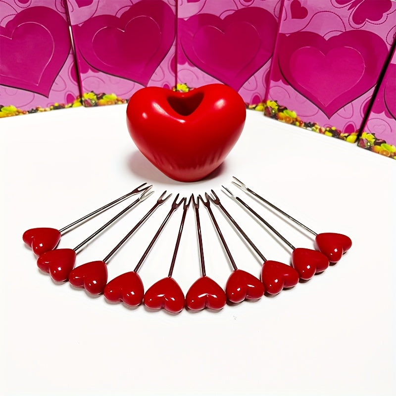 Un ensemble de fourchettes à dessert en acier inoxydable en forme de cœur